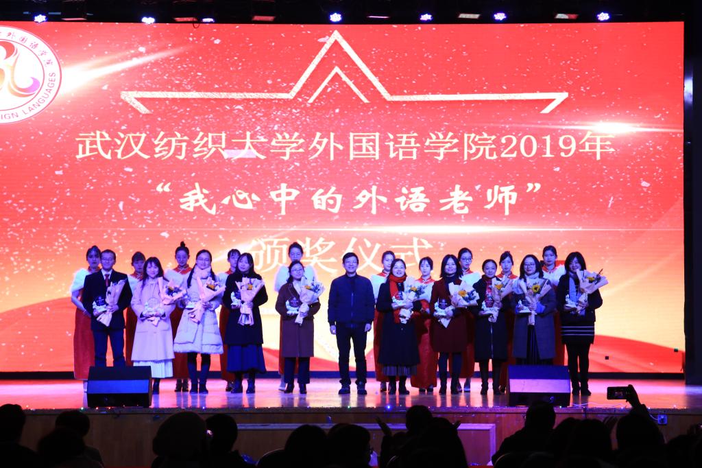 12月19日,外国语学院“我心中的外语老师”颁奖典礼在阳光校区大学生活动中心演播厅隆重举行,武汉纺织大学党委常委、副校长黄运平,教务处处长何畏,团委书记段薇静,学生工作部副部长李琼瑛,外国语学院院长谭燕保,外国语学院党委书记胡中原和外国语学院全体教师以及八百余名在校生参加了典礼。