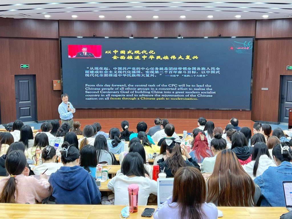 为了实现中国式现代化,全面推进中华民族伟大复兴的奋斗目标,育人是根本。石教授结合党的二十大报告,强调将国家意识与立德树人引入外语教学的重要性:“外国语言文学学科作为兼具工具性与人文性的课程,应注重培养学生的沟通表达能力、全球视野、人文情怀以及多元文化包容性,也应注重培养学生的专业能力胜任力,但更重要的是学生的品格和责任心的培养,有家国情怀、有大志、有国民素养、有国家意识。”