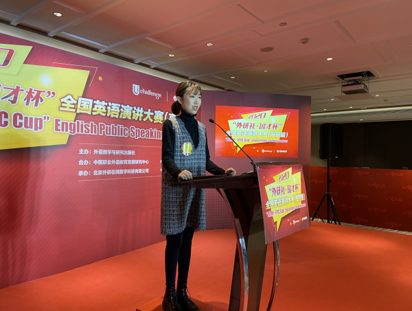 2019年,黄昕婷在北京参加外研社全国英语演讲大赛总决赛。受访者提供
