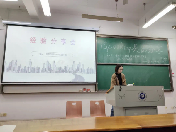 2021年,黄昕婷参加英语比赛获奖后回校给学弟学妹做经验分享。受访者提供