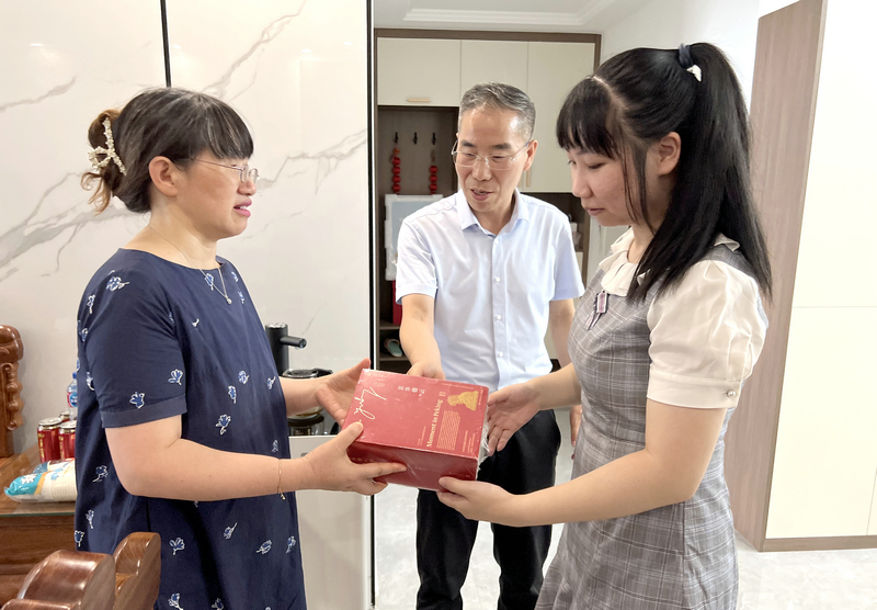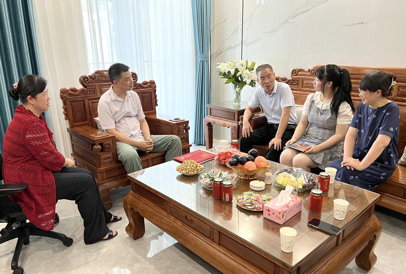 七月荆楚,酷热依旧,7月31日下午,家住汤逊湖畔的余欣桐同学收到了一份特别的礼物,中国工程院院士、武汉纺织大学校长徐卫林一行登门拜访,第一时间把录取通知书送到2022级英语专业新生余欣桐的手中,向余欣桐及其家人表示祝贺。招生就业处、外国语学院相关负责人陪同。