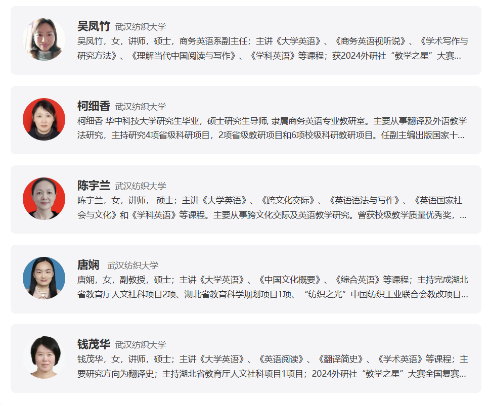 值得一提的是,武汉纺织大学外国语学院的课程建设并未止步于通用教材。在教学中,学院创造性融入了 “纺织科技文化” 特色元素,引导学生围绕中国纺织工业的创新发展、可持续时尚的“中国实践”、非遗文化的国际传播等独特视角展开深度阅读与写作。这使得课程内容不仅具有思想性,更具备了鲜明的学科交叉性和行业辨识度,让“中国故事”讲得更加具体、生动和深刻。