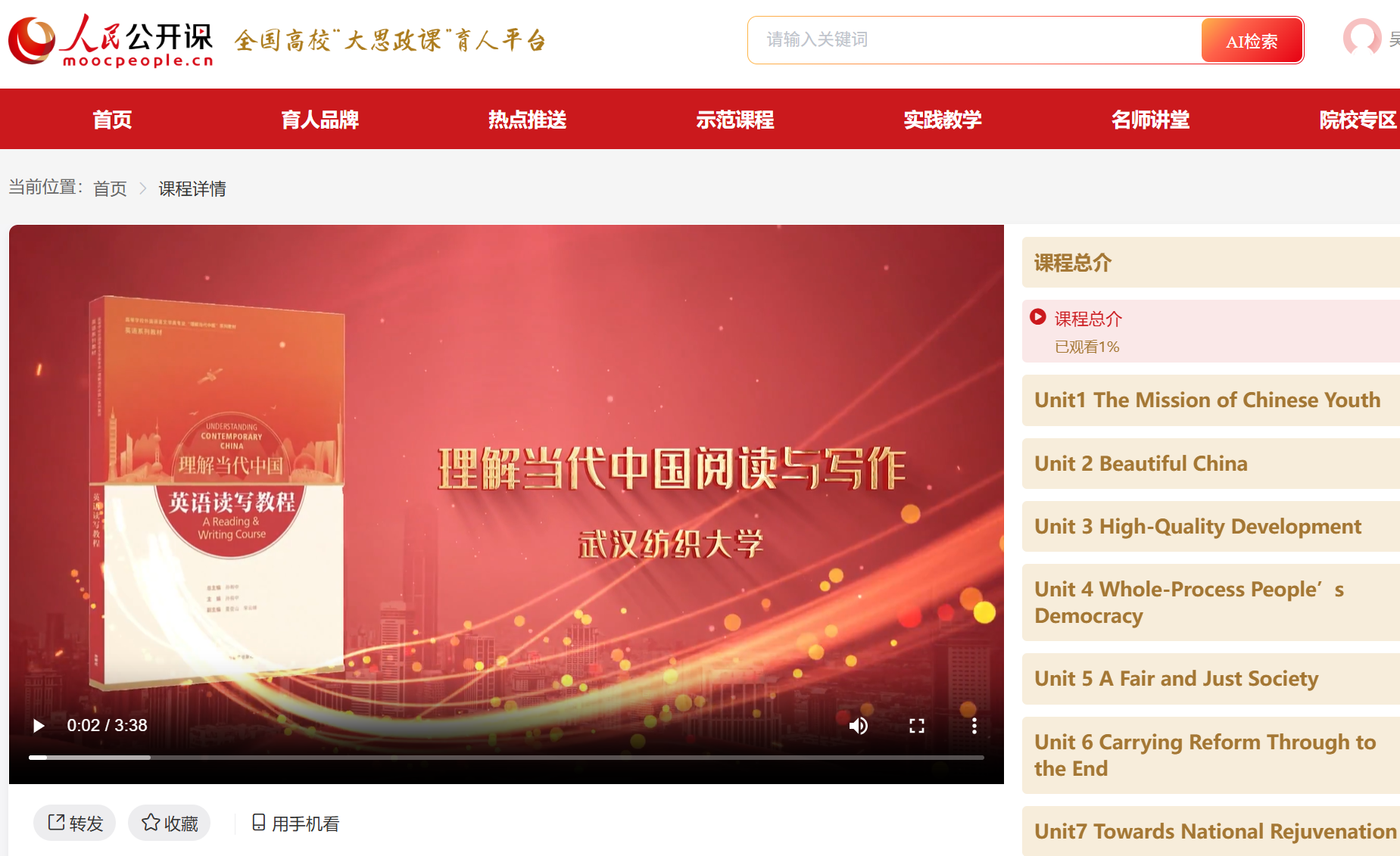 近日,武汉纺织大学成为湖北省首家将“理解当代中国英语阅读与写作”全课程资源正式上线人民网人民公开课国家级平台的高校,面向全国公众及广大师生开放。此举标志着武汉纺织大学在“理解当代中国”系列课程的建设与推广上迈出了标志性的一步,从校内走向全国,为学校先进教学成果提供了更广阔的展示与共享舞台。