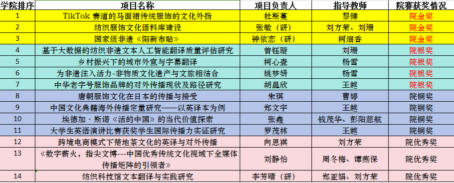 各项目团队通过新信息技术解决传统问题、现实问题,能够积极将理论转换为知识、能力与社会效应。如“大数据的翻译检索和质量评估平台”项目团队展示了人工智能技术在传统纺织非遗传播中的应用;“纺译之声——纺织服饰文化语料库建设”项目团队通过建设纺织服饰文化语料库,系统收集和整理相关文献资料和语料,为纺织服饰文化的传承和研究提供了重要的数据支持;“国家级非遗《阳新布贴》”和“为非遗注入活力-非物质文化遗产与文旅相结合”两个项目团队充分发掘了国家级非物质文化遗产的新时代价值,将传统服饰融入当下年轻人的生活和娱乐方式中,为传统文化的传承和创新注入了新的活力和动力;“TikTok赛道的马面裙传统服饰的文化外扬”和“唐朝服饰文化在日本的传播与接受”两个项目团队从文化自信的视域出发,研究了马面裙与唐朝服饰文化在海外的传播情况,探索了其在当代社交媒体上的文化外扬之路。此外,其他项目团队也分别从不同的角度探索了非物质文化遗产、国际赛事传播、文学价值、中国老字号服饰文化、中国经典典籍和乡村振兴等多个方面的课题。他们的创意项目展示了青年学子对传统文化的热情和创新思维,为文化传承与发展注入了新的活力。
