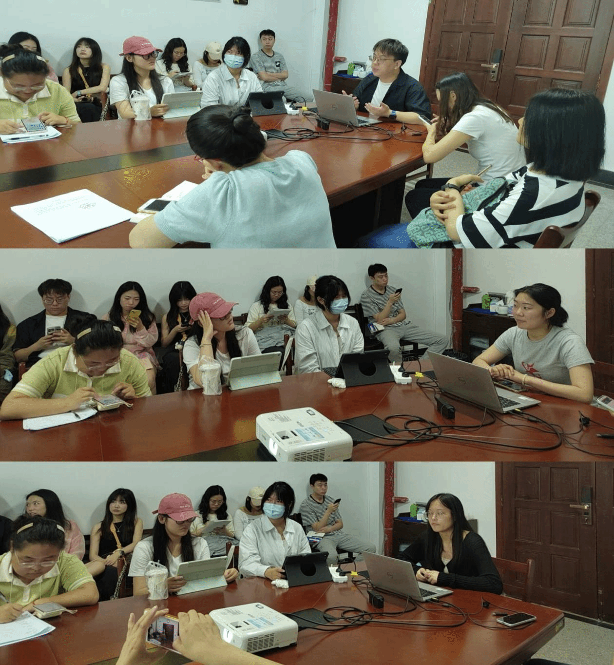 接着,武汉科译汉嘉信息技术有限公司人事经理Louise、武汉精译翻译公司总经理余建强以及传神语联网网络科技股份有限公司项目经理周萍就同学们的实习情况先后进行了点评。Louise对科译实习的4位同学认真工作的态度表示肯定,认为同学们在短时间内就能够快速适应工作环境,并展现出不错的工作能力和团队合作精神。余建强对实习生的努力和成长表示认可,同时也提醒同学们,要想成为一名合格的译员,还有很长的路要走。周萍老师表示同学们在项目执行中表现不错,在工作中展示了优秀的沟通能力和解决问题的能力。