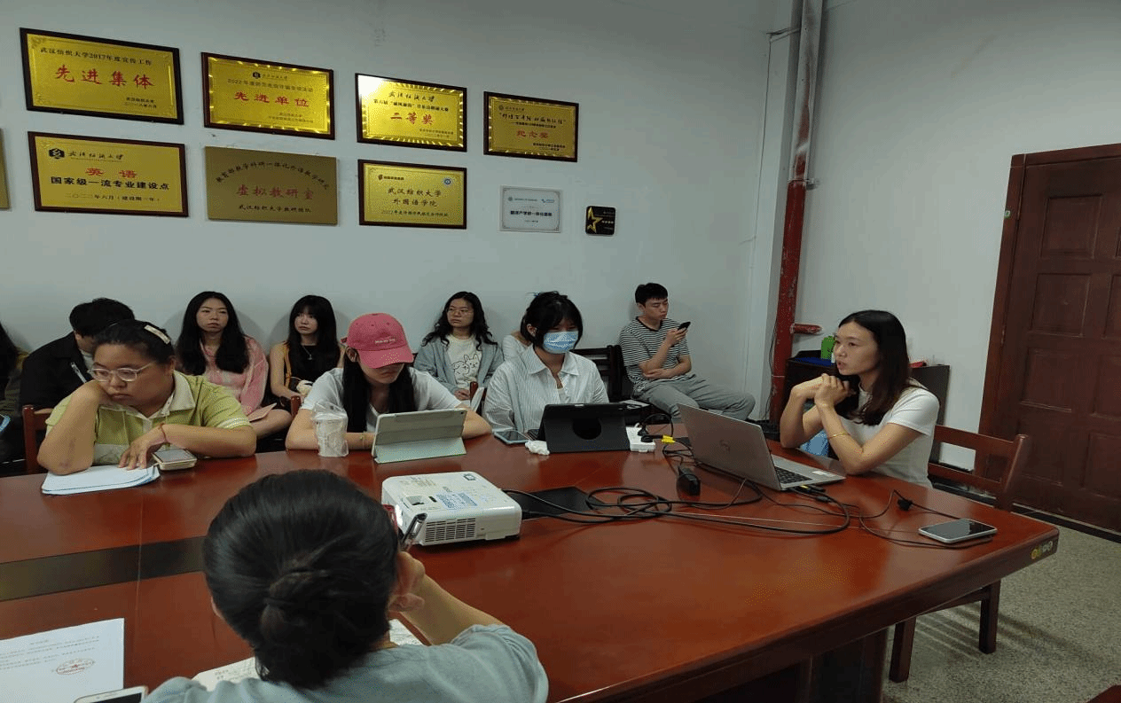 6月28日上午,外国语学院2022级研究生毕业实习总结及开题报告准备会在04-313会议室举办。外国语学院副院长罗绮伦、刘方荣,MTI教育中心刘珊、副主任华敏、陆雪芹,22级硕士生导师及22、23级MTI研究生参加了此次会议。本次会议还特邀武汉科译汉嘉信息技术有限公司人事经理Louise、武汉精译翻译公司负责人余建强、传神语联网网络科技股份有限公司项目经理周萍参加。会议由MTI教育中心刘珊主任主持。