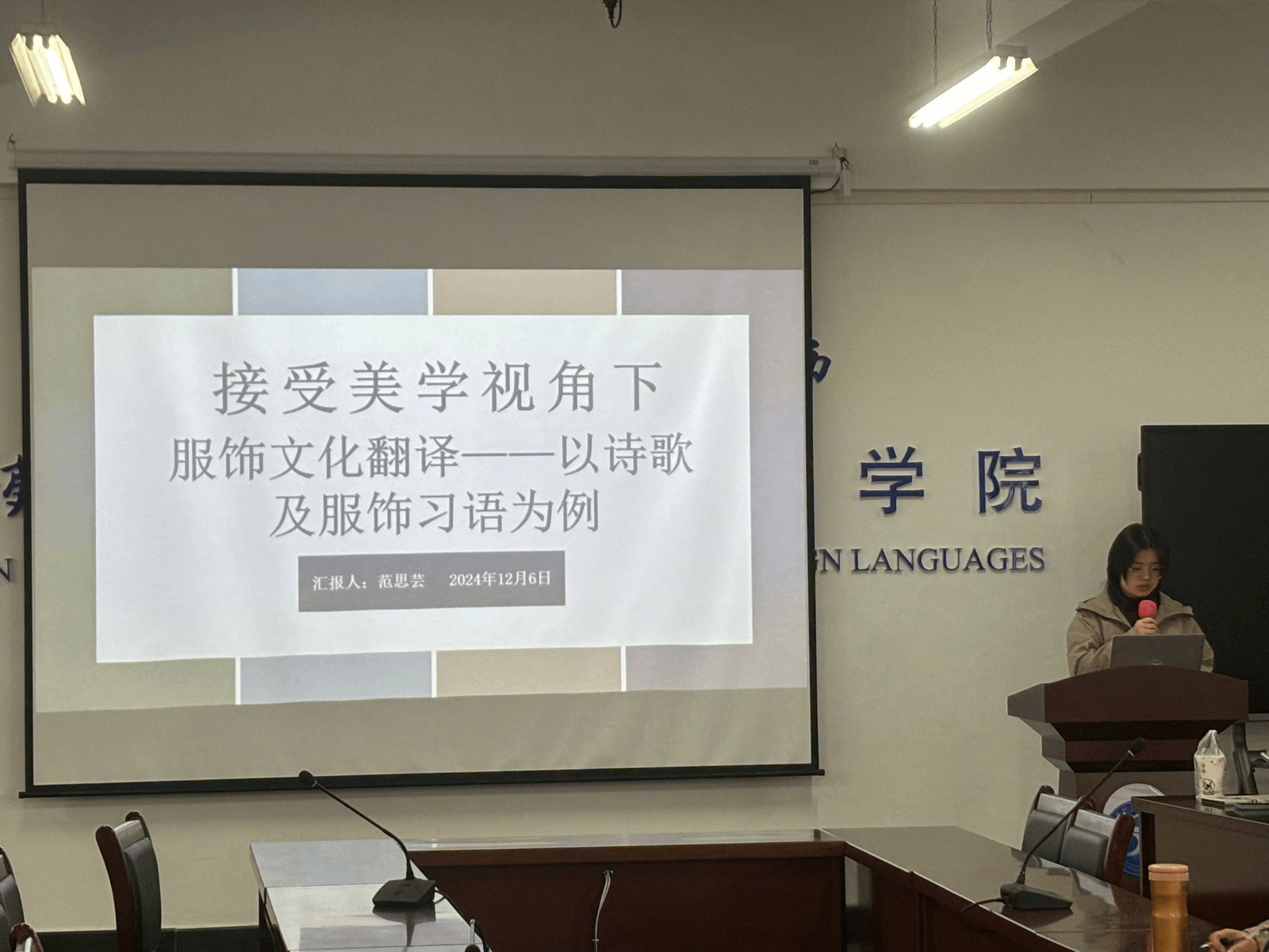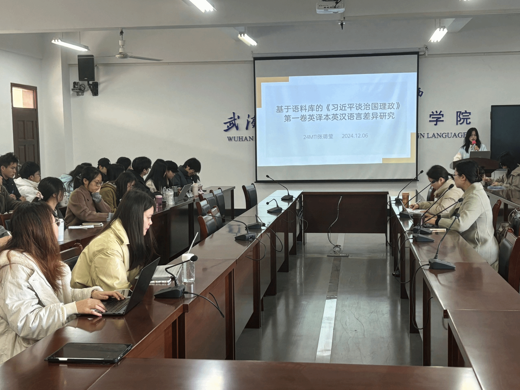 12月6日上午,外国语学院在崇文楼303教室成功举办第八十五期“经纬译学”研究生论坛。此次论坛由陆雪芹和张守慧老师担任点评嘉宾,24级MTI研究生黄赢纪同学主持。三位主讲人分别是23级MTI研究生范思芸、24级MTI研究生张璐莹和梁琳,外国语学院23级、24级MTI研究生参加了此次论坛。