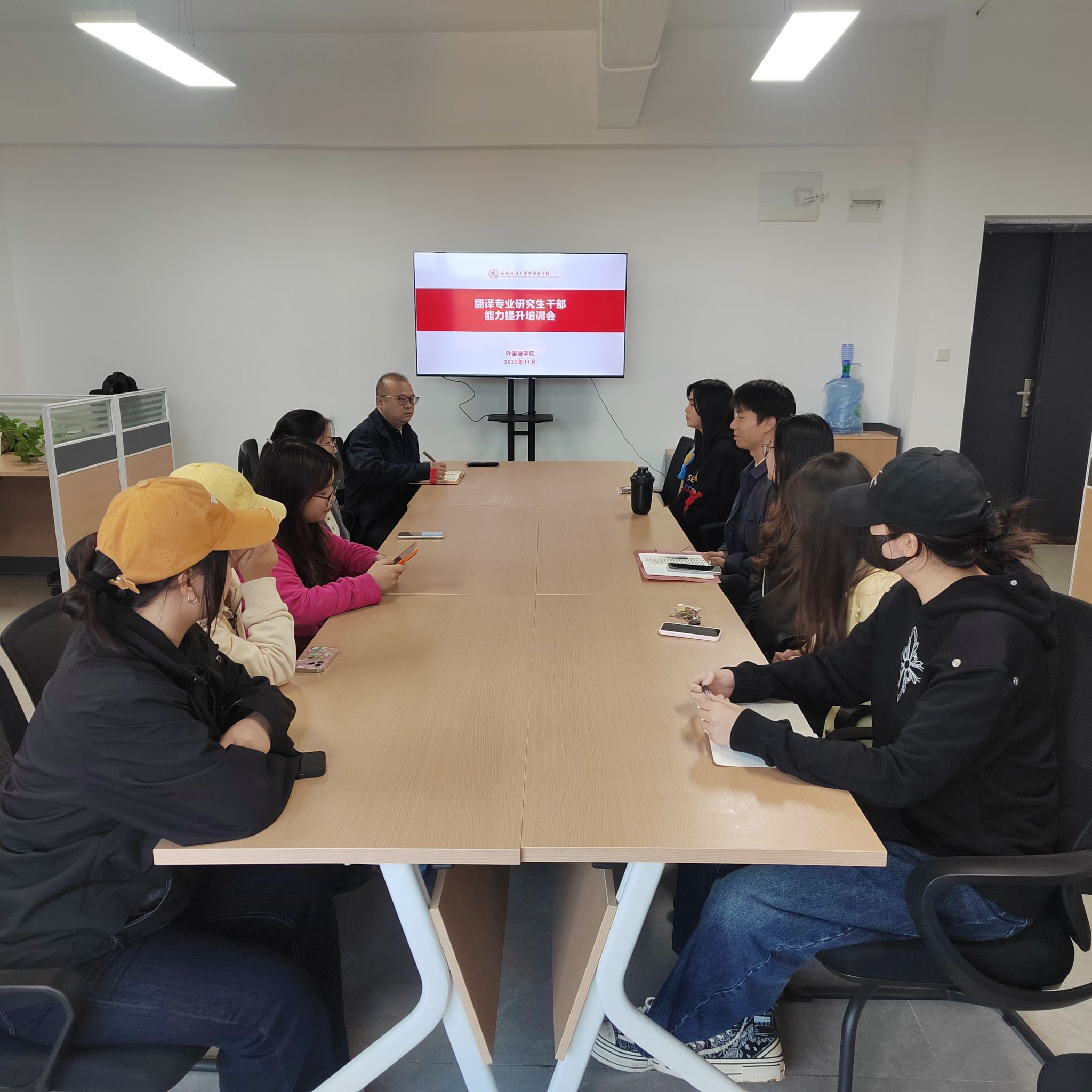 为加强研究生干部队伍建设,提升其思想素养与综合能力,11月13日,外国语学院组织召开“研究生干部能力提升培训会”。本次培训由学院党委副书记主讲,全体翻译专业研究生干部参加。