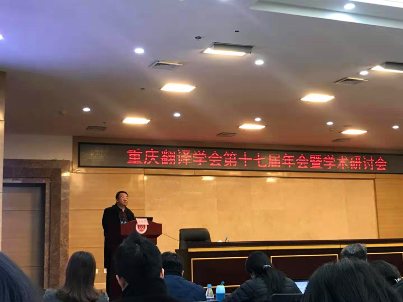 2019年12月28日,由重庆翻译学会主办、重庆师范大学外国语学院承办的重庆翻译学会第十七届年会暨学术研讨会在重庆师范大学博雅楼召开。武汉纺织大学外国语学院“_”特聘教授汤富华应邀参加,并作题为“语感的理性-再论翻译的发生”的大会主旨发言。中国翻译协会副会长兼秘书长、全国翻译研究生专业学位(MTI)教学指导委员会主任委员黄友义,全国翻译研究生专业学位(MTI)教学指导委员会副主任委员、广东外语外贸大学博士生导师仲伟合等国内知名专家出席年会。