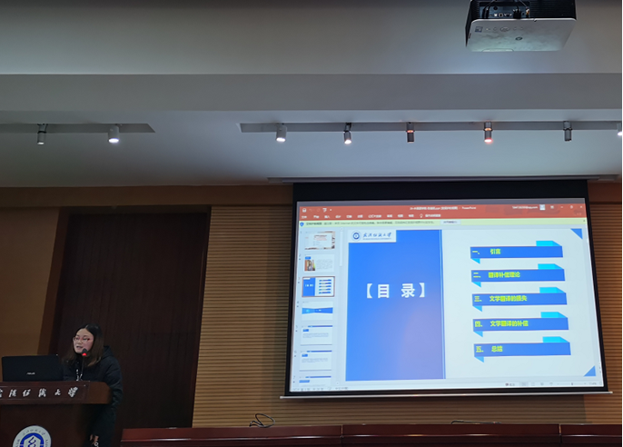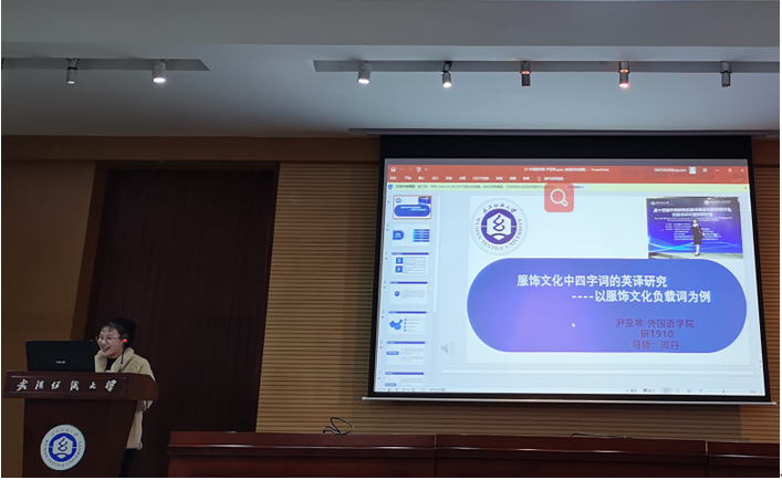 12月4日,为促进研究生之间的学术交流和思想碰撞,培养创新意识,提高研究生培养质量,营造浓厚的学术氛围,武汉纺织大学研究生处在行政楼二楼会议室开展了“武汉纺织大学研究生系列学术论坛”活动。我院19级MTI学生汪立勤、张倩茹、尹亚琴、韩聪参加了此次学术论坛并发言。