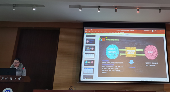 会议分为上下两场,上半场经济学院和管理学院的研究生上台发言,分别从自身专业角度出发结合现代计算机科学技术汇报自己三年来的学术成果。下半场则主要由马克思学院及外国语学院研究生代表发言。我院学生的发言题目依次是“儒家文化与中国话语构建与传播”、“文学翻译的补偿性研究——以红楼梦英译为例”、“服饰文化中四字词的英译研究——以服饰文化负载词为例”以及“多模态语境参数视角下的字幕翻译赏析——以电影《降临》为例”。