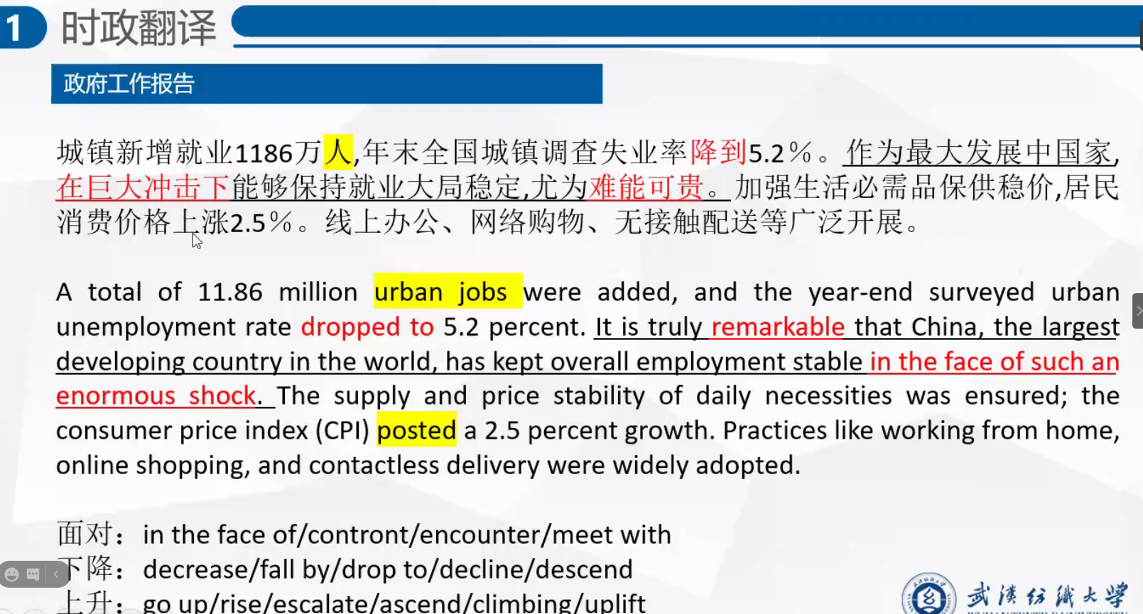 此次沙龙由曹福然博士主持,19级翻译硕士黄文船和汪立勤主讲。黄文船以自己的翻译实践报告为例,反思了翻译审校过程,提出了翻译实践报告撰写的建议,包括翻译审校两个重要切入点和翻译实践报告高撰写三步走的方法。汪立勤分享了自己在政府工作报告的翻译、外刊阅读和课外阅读林语堂先生的《吾国与吾民》的心得和体会。