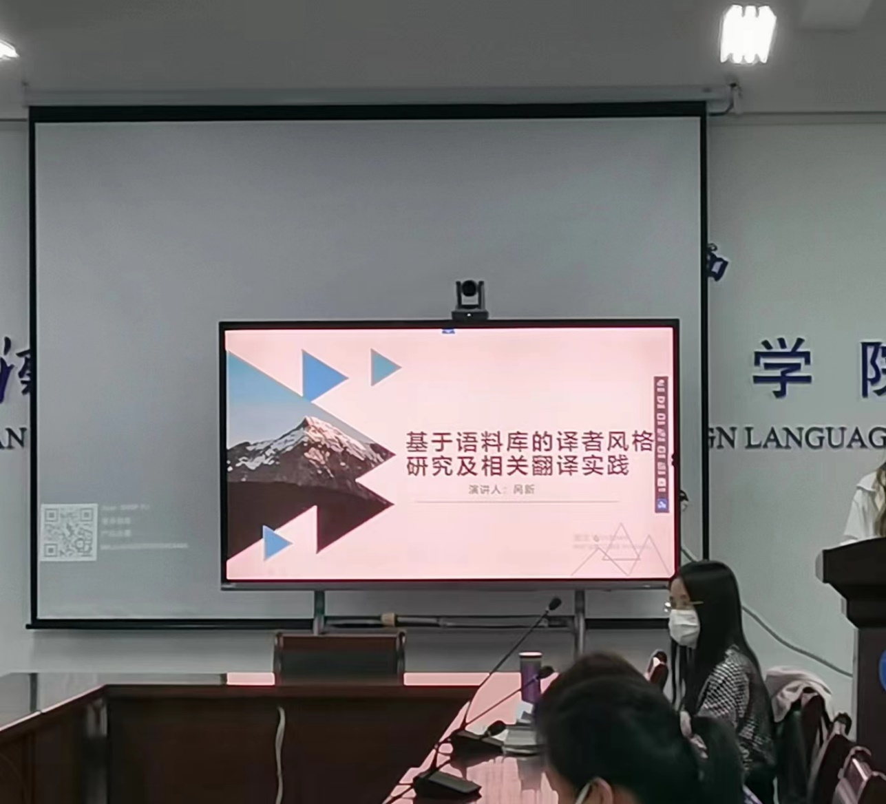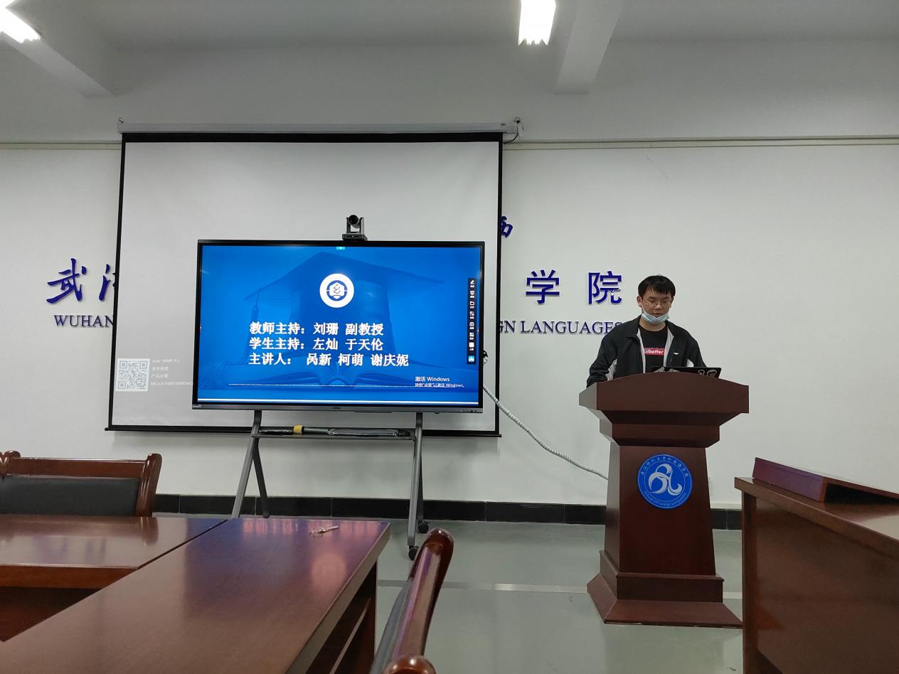 本次论坛学生主持为于天伦和左灿同学,主讲人是21级研究生呙新、柯萌、谢庆妮,论坛的主题是“文学翻译”。论坛分为三个环节,首先,主讲人进行主题汇报,然后是自由讨论时间,最后与会导师进行点评。