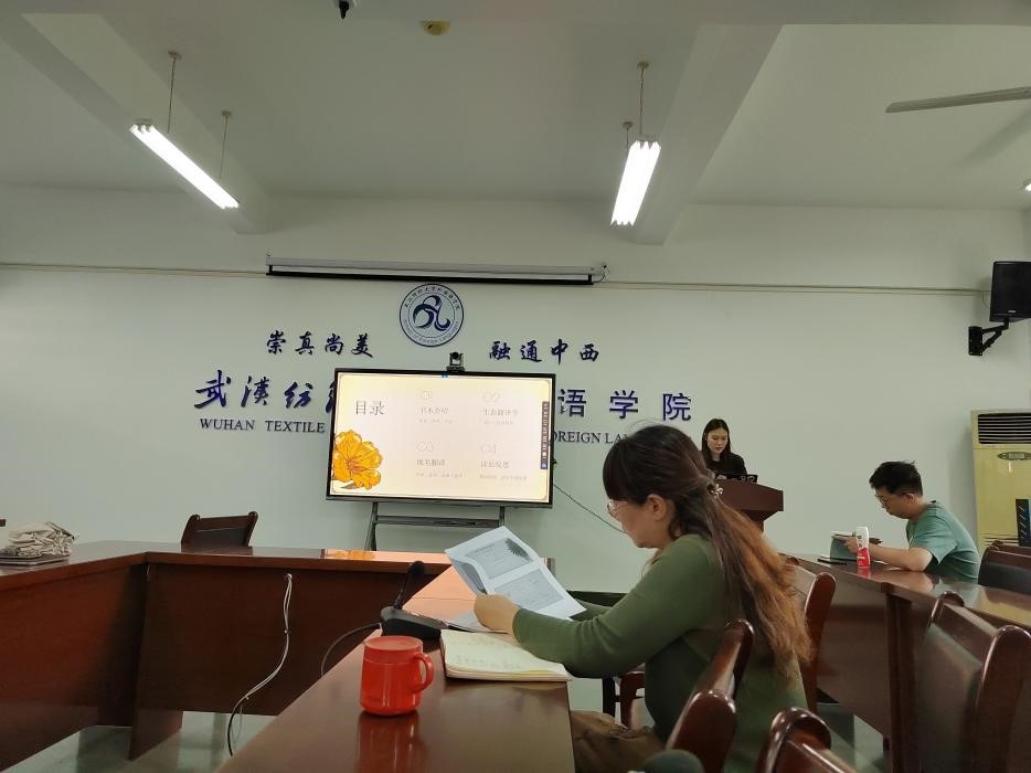 5月17日下午,武汉纺织大学外国语学院在04-303成功举办了第四十三期“经纬译学”研究生论坛。院长谭燕保教授担任本次论坛的特邀主持,MTI教育中心主任刘珊副教授、陈奇敏副教授、陈芬博士担任本次论坛的特邀导师,21级全体翻译硕士研究生参加了本次论坛。