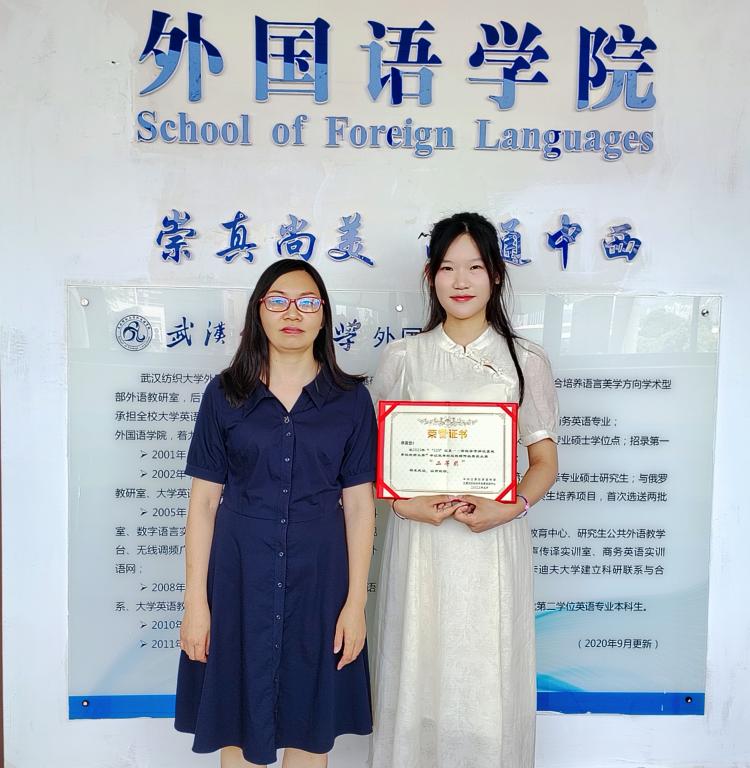5月20日,外国语学院22级MTI学生彭怡然在刘方荣老师的指导下,成功获得‘520’江夏-高校学子讲高校故事短视频大赛二等奖。