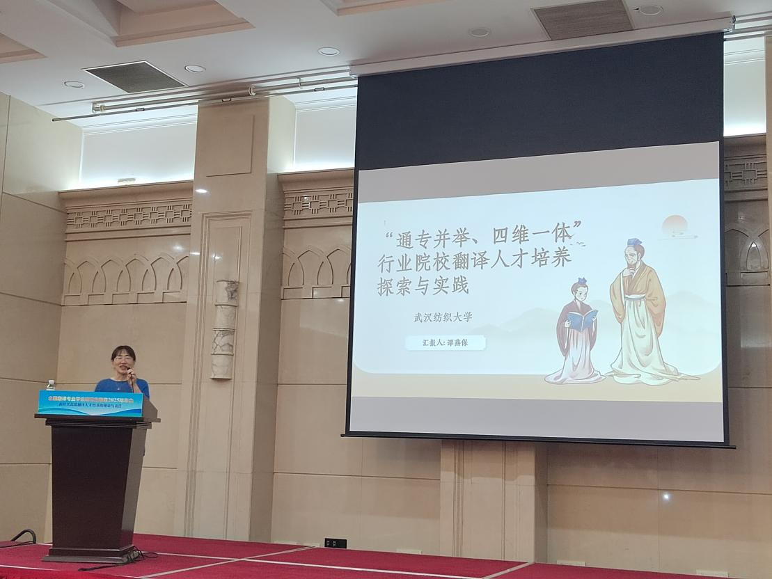 外国语学院院长谭燕保、MTI教育中心主任刘珊参加了会议。谭燕保在会议分论坛做了题为“‘通专并举、四维一体’行业院校翻译人才培养探索与实践”的发言,推广了我院“通专并举、四维一体”翻译人才培养探索与实践教学成果。