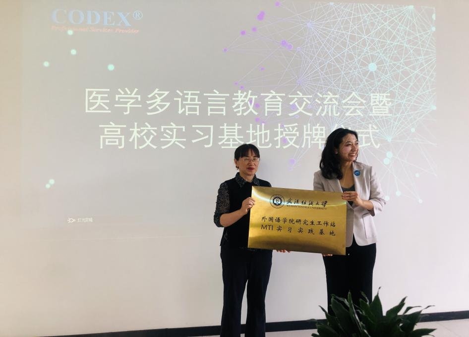 4 月 25 日下午,武汉纺织大学外国语学院院长谭燕保率队,副院长刘方荣、院长助理兼商英教研室主任吴志杰、MTI 中心副主任华敏及 4 名实习研究生,应邀参加武汉科译汉嘉信息技术有限公司主办的医学多语言教育交流会暨高校实习基地授牌仪式。法国高等教育署、湖北中医药大学外国语学院代表也齐聚一堂,共话医学多语言教育发展新路径。
