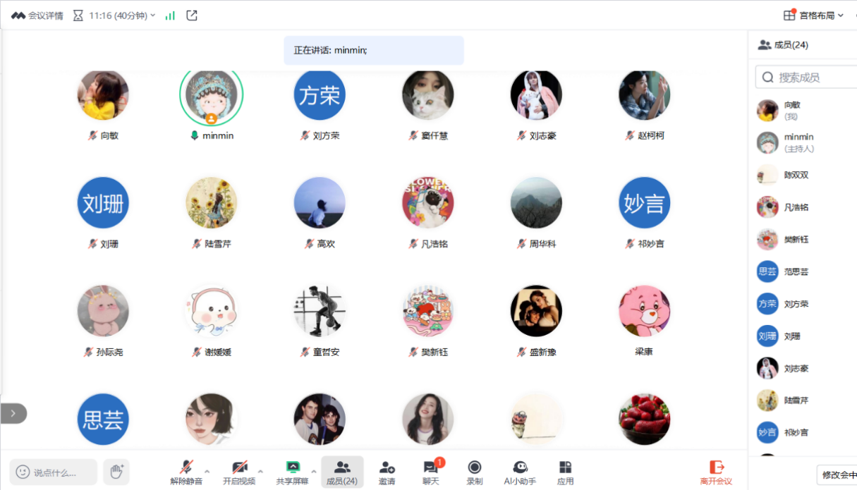 华敏首先反馈了学生在各个单位的实习情况,整体情况良好,她希望大家继续保持。同时她也将实习单位反馈的问题进行了说明,希望大家重视并且相互提醒。华敏从工作态度、与导师和学院的沟通、安全和请假流程四个方面对同学们后期的实习提出要求和建议。她要求大家保持认真积极负责的态度,尽心尽力完成实习单位的工作任务,与同事和睦相处;有问题要第一时间联系自己的导师,与自己的导师至少要保持一周一次的交流;上下班途中要注意自身安全,注意保护个人信息;重点强调请假流程要严格规范。