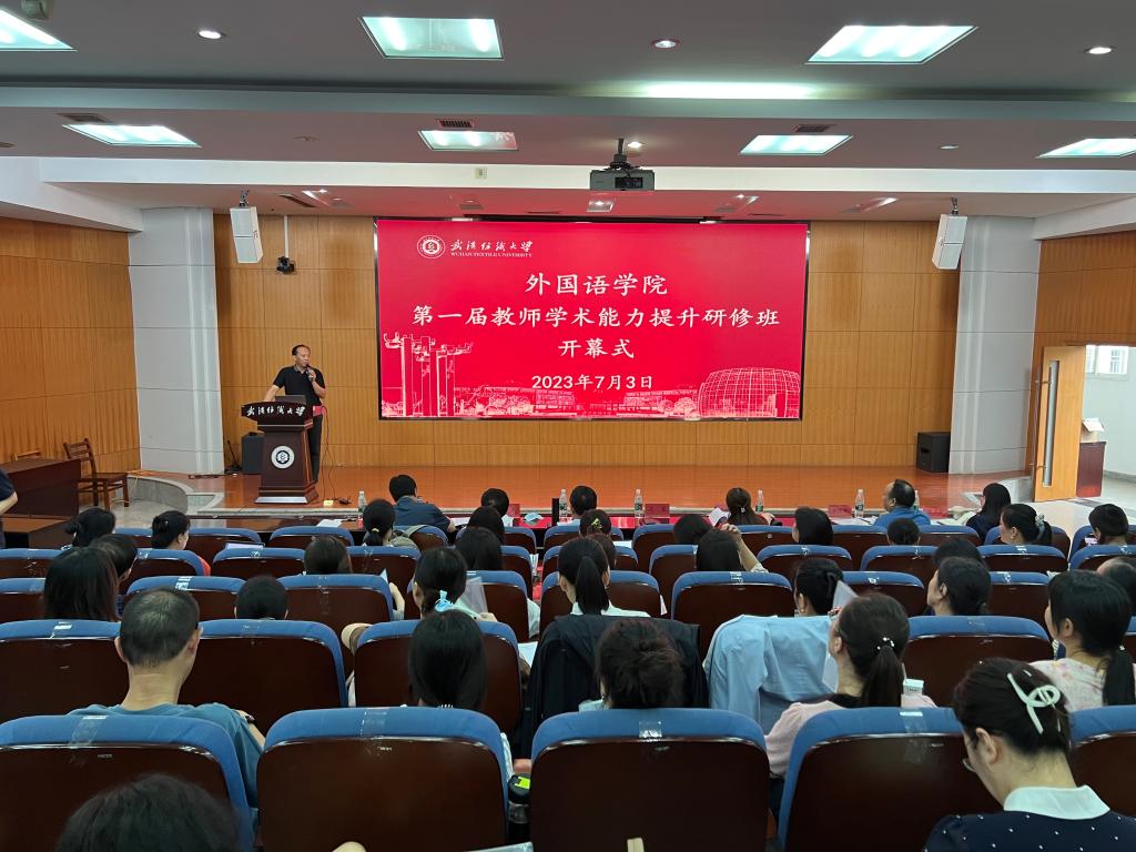 据悉,外国语学院第一届教师学术能力提升研修班除了邀请湘潭大学季水河教授、华中科技大学徐锦芬教授,还邀请了广东外语外贸大学黄忠廉教授、湖南大学刘正光教授、南开大学张文忠教授、华中科技大学黄勤教授等国内知名专家学者为教师们授课,旨在进一步打造思想先进、学养丰厚、理念创新、德才兼备的教师队伍,提升教师科研能力水平,为美好纺大建设贡献力量。