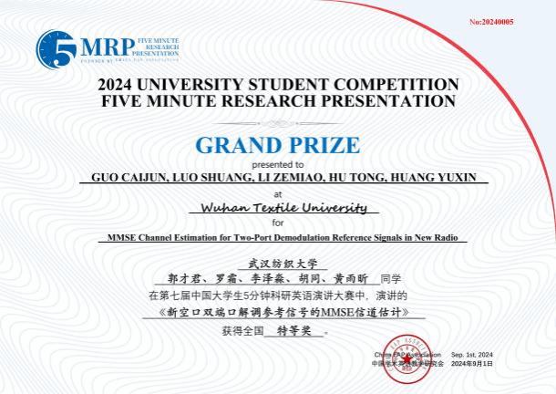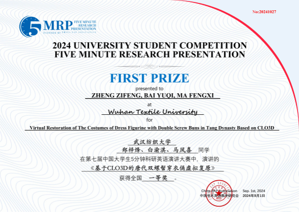 近日,2024第七届“中国大学生5分钟科研英语演讲大赛”(Five Minute Research Presentation, 5MRP)全国总决赛中,武汉纺织大学荣获全国特等奖1项、全国一等奖1项、全国二等奖8项、全国三等奖13项、全国优胜奖19项,以及优秀指导教师奖和组织奖等奖项。