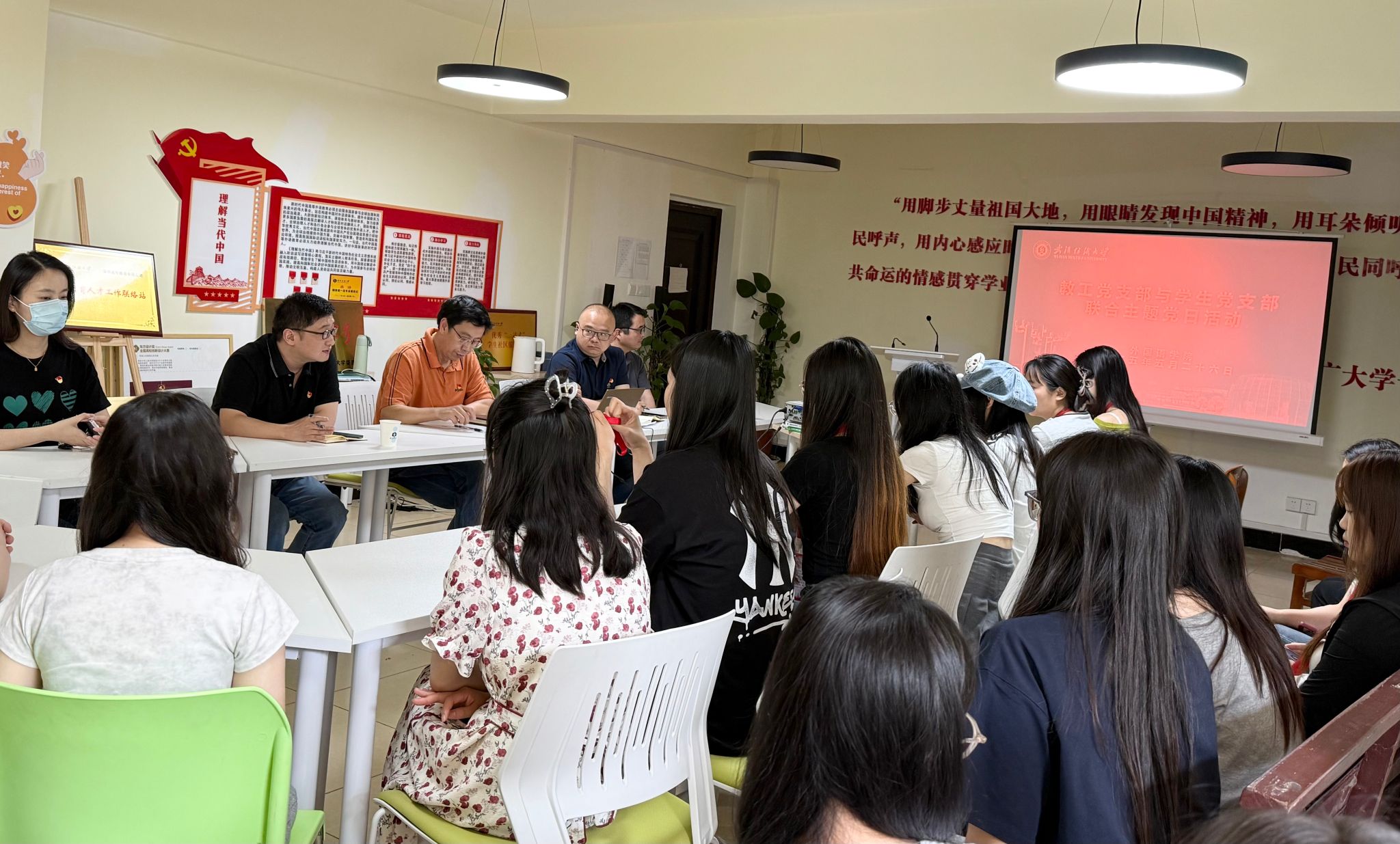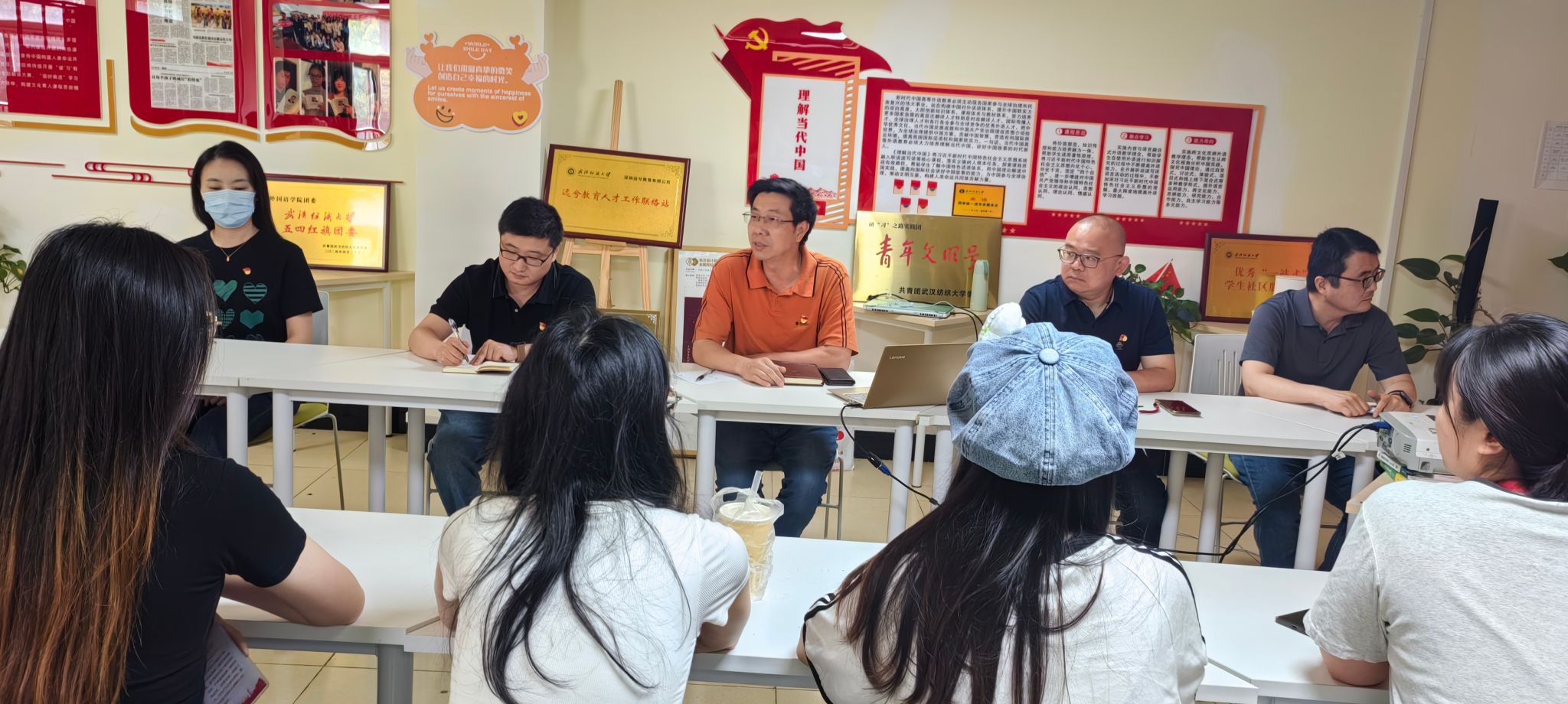 为深入学习贯彻习近平新时代中国特色社会主义思想,进一步推动全面从严治党向基层延伸,增强师生党员的纪律意识和责任担当,武汉纺织大学外国语学院于5月26日上午,在读“习”有声学生成长服务站开展师生党支部联合主题党日活动暨毕业生党员教育。外国语学院党委书记胡中原、党委副书记彭阳慈航、教工第四党支部全体教师党员、全体毕业生党员参加此次会议。