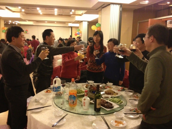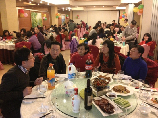 在随后的团年晚宴上,外国语学院领导和教师们纷纷端起手中酒杯,向老教师们送去新春祝福,祝愿他们身体永远健康,生活幸福如意。两位老教师都表示,要继续关心青年教师,关注学院发展,并期待外国语学院的未来更美好。