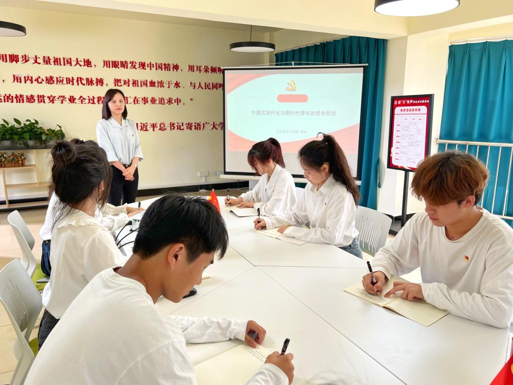 本次主题教育宣讲和调研,外国语学院与马克思主义学院共建共享“一站式”学生社区建设成果,高质量推动大学生思政课建设,为学生带来身边的“思政金课”。