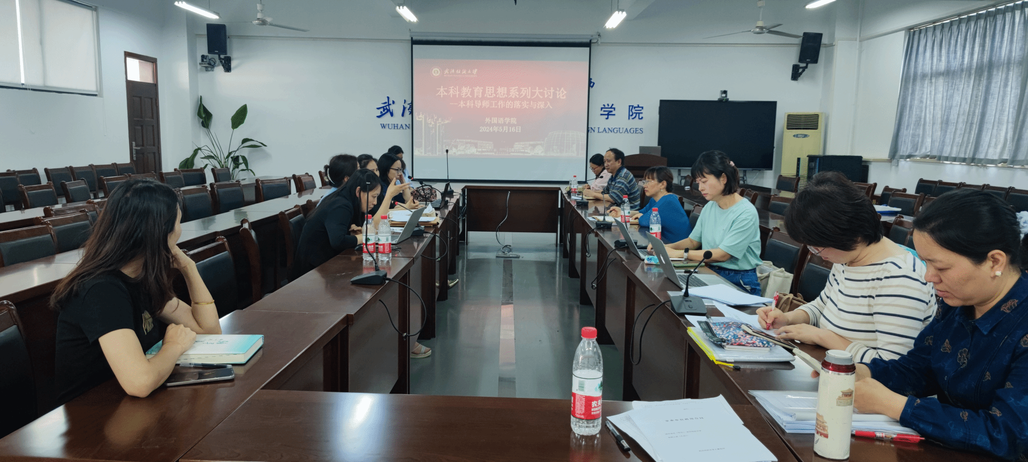5月16日下午,外国语学院举行了题为“本科教育思想系列大讨论--本科导师工作的落实与深入”的会议,院长谭燕保教授、副院长罗绮伦、副院长刘方荣、党委副书记彭阳慈航和辅导员以及全体21级本科生导师参加了会议。会议由谭燕保院长主持。