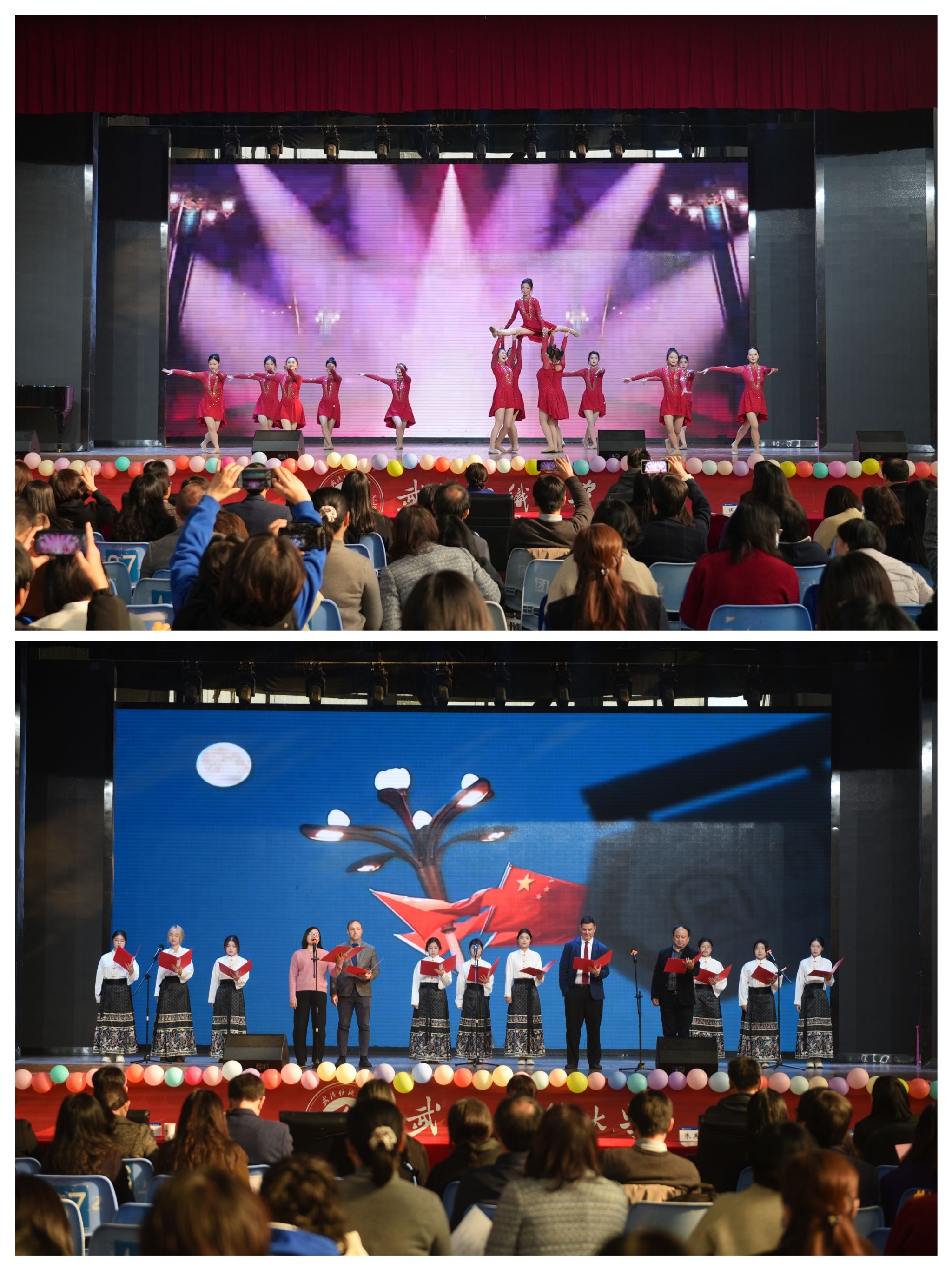 第二篇章“艺韵交织,四海和鸣” 凸显了中外文化的交融互鉴。教师英文独唱 Another Day in Paradise 深情动人;视频展示《“美丽湖北”印象之四重声景》以多语言音画描绘荆楚风韵;爵士舞《破界》与英语配音《爱宠大机密》则分别以现代舞姿和声音演技,展现了青年学子的创新活力与语言驾驭能力。本篇章特别设置了温情环节——谭燕保院长为2025年度荣休教师颁发纪念牌,致敬老师们数十载的耕耘与奉献;荣休教师代表胡中原、童玲、胡彩玲、肖菊兰相继为当选“我最喜爱的外语老师”的获奖教师颁奖,师道传承,感人至深。