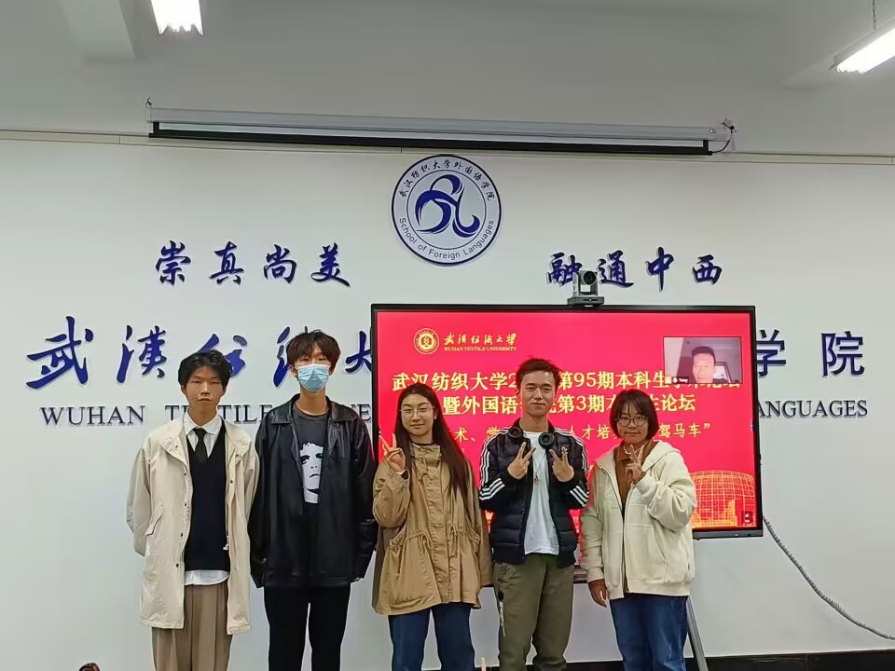 外国语学院于2022年11月17日下午在04-303展开第九十五期本科生论坛,论坛主题为“学术、学科竞赛- 人才培养的两驾马车”。论坛发言人分别为英语11902班樊静萱、商务英语12001班何昊然和叶可、商务英语11901班朱腾、商务英语12201班罗浩诚。刘芳荣副院长,彭阳慈航书记、黎健老师、袁哲老师和吴志杰老师应邀参与了论坛。本次论坛以推进学术层面的纵深发展、扩大学科竞赛的横向影响力为目的。