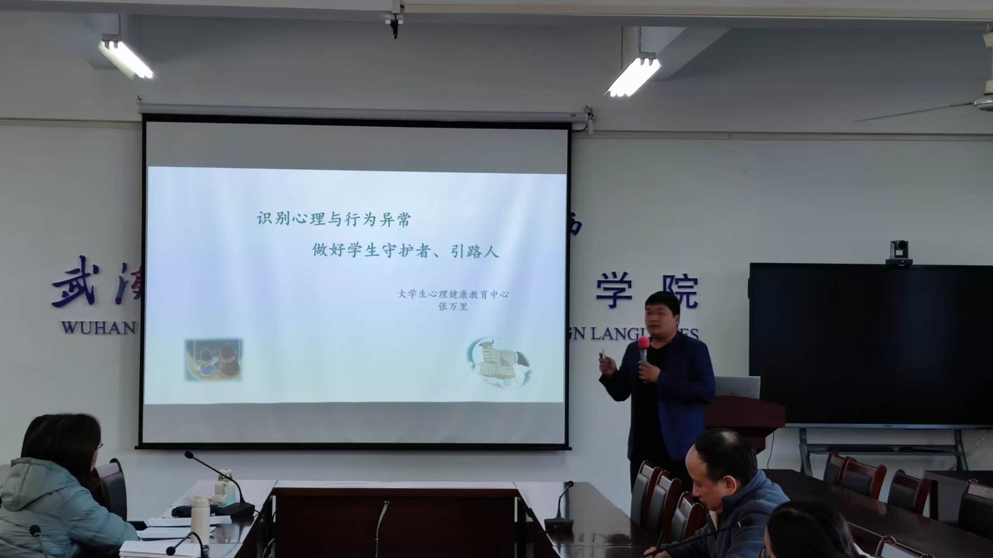 11月29日,外国语学院邀请学校心理中心张万里老师以“识别心理与行为异常做好学生守护者、引路人”为主题开展心理工作坊。旨在提升全体班主任、研究生导师和本科生导师的心理健康意识,增强心理健康实践中的应对能力。