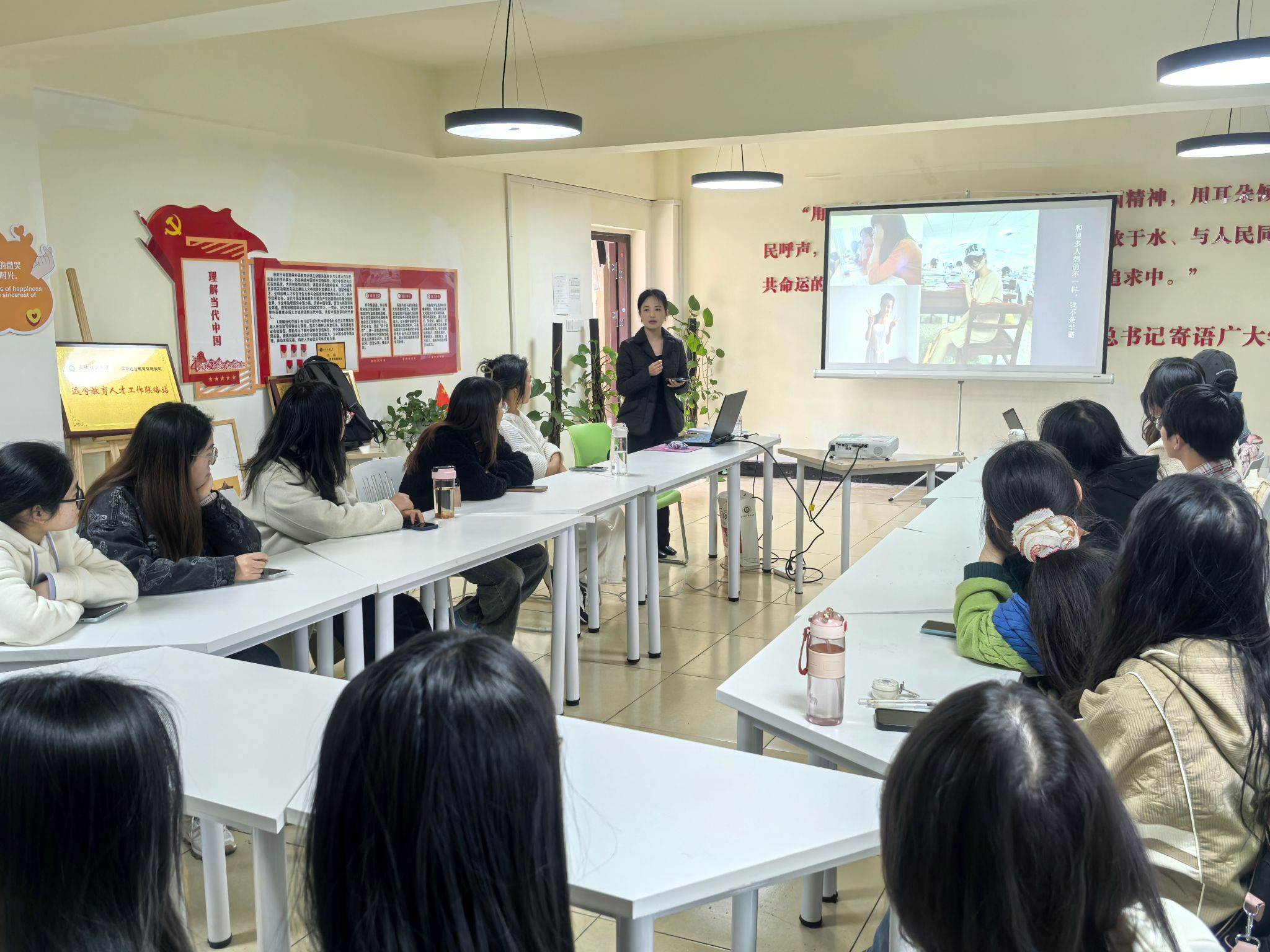 3月20日下午,外国语学院在读“习”有声一站式学生社区举办“语”时俱进·成长导航校友分享会,17届研究生校友,青橙创星企转网创始人严霜返校分享成长经验。