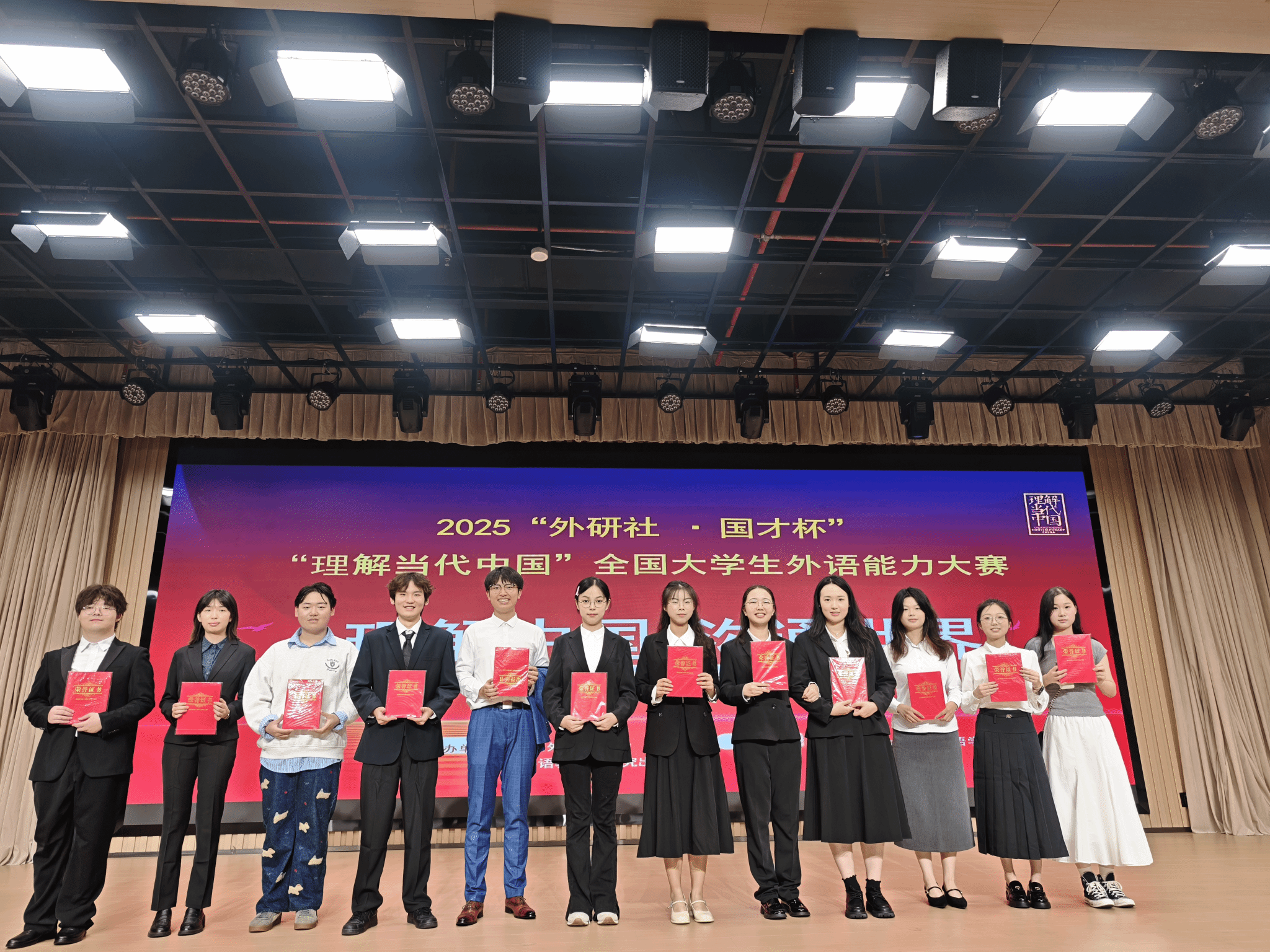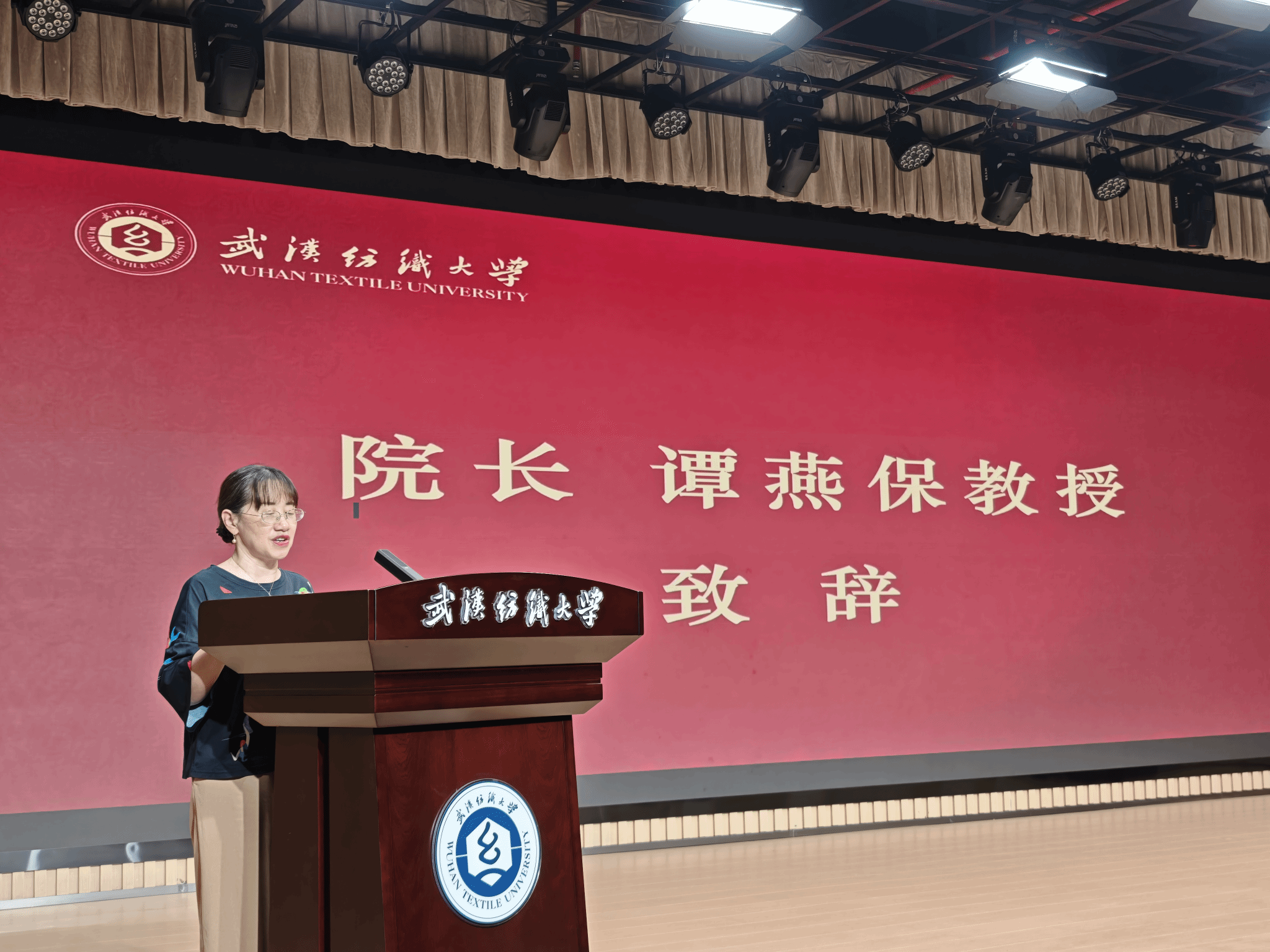 2025年“外研社·国才杯”“理解当代中国”全国大学生外语能力大赛武汉纺织大学英语演讲决赛暨外语文化节活动于10月9日下午在建全会堂圆满落幕。外国语学院院长谭燕保教授、副院长罗绮伦副教授、副书记彭阳慈航出席活动。比赛由英语专业24级崔嘉靖同学与23级王依荷同学担任主持人。本次比赛紧扣“理解中国,沟通世界”的大赛宗旨,以“Striking the Waves”为主题,充分展现了我校学子扎实的外语功底、深厚的家国情怀与卓越的综合素养。