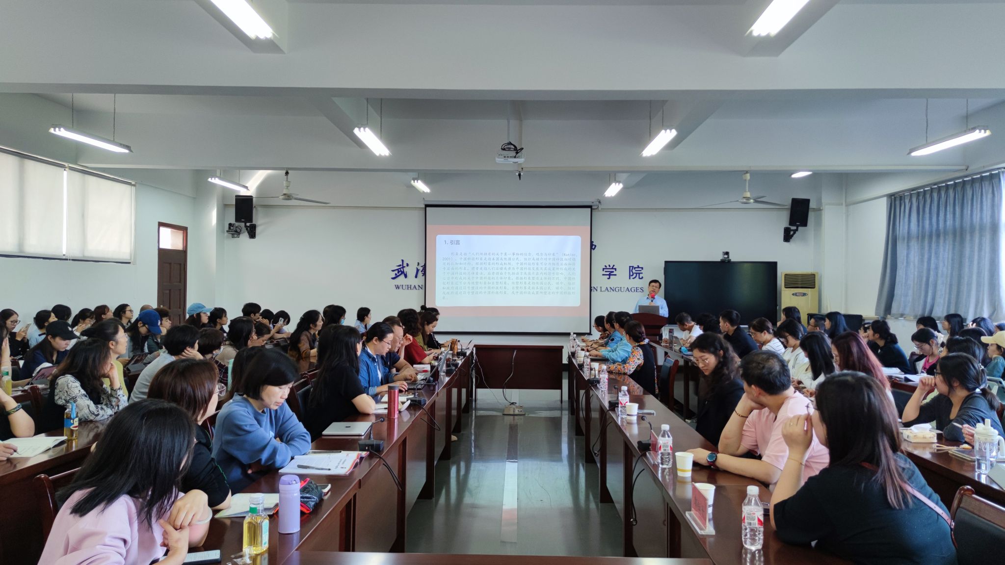 10月18日上午,上海外国语大学胡开宝教授来学院做学术讲座,学院教师和24级新生共同参加。胡教授以中国特色大国外交话语英译中的中国形象研究为主题,以“自塑”和“他塑”的形象区别引入,从文本特征、话语实践、社会实践三个层面去进行话语分析,并重点介绍了以此为理论框架的语料库平台在学习、教学和研究中的应用。新生表示,第一次现场聆听专业领域的大家讲座,十分震撼于本专业的发展前沿,感觉专业学习永无止境,大有可为。