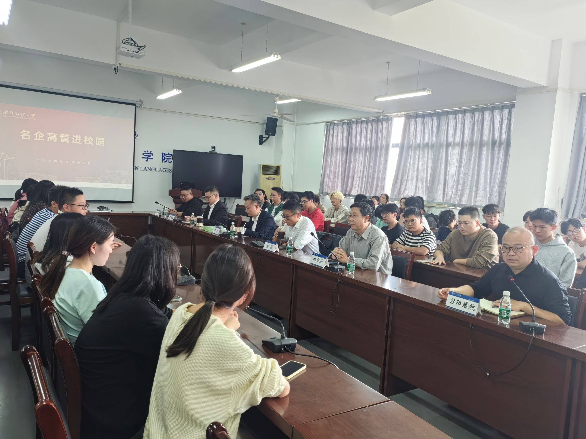 为进一步提升就业指导服务,提升学生就业核心竞争力, 9月15日,由武汉纺织大学招生就业处“织梦”生涯工作室主办,外国语学院、机械学院、电子电气学院联合承办的名企高管进校园活动在崇文楼303会议室举行。活动邀请宁波高松技术有限公司风控法务总监庞然先生,为同学们带来关于职业生涯规划、面试技巧、行业分析等方面的分享。宁波高松技术有限公司美东北大区总监万里、北欧五国区域经理纪极强、校园招聘主管卢义偲、24届校友杨威,外国语学院党委书记胡中原和相关学院21级、22级学生参加活动。