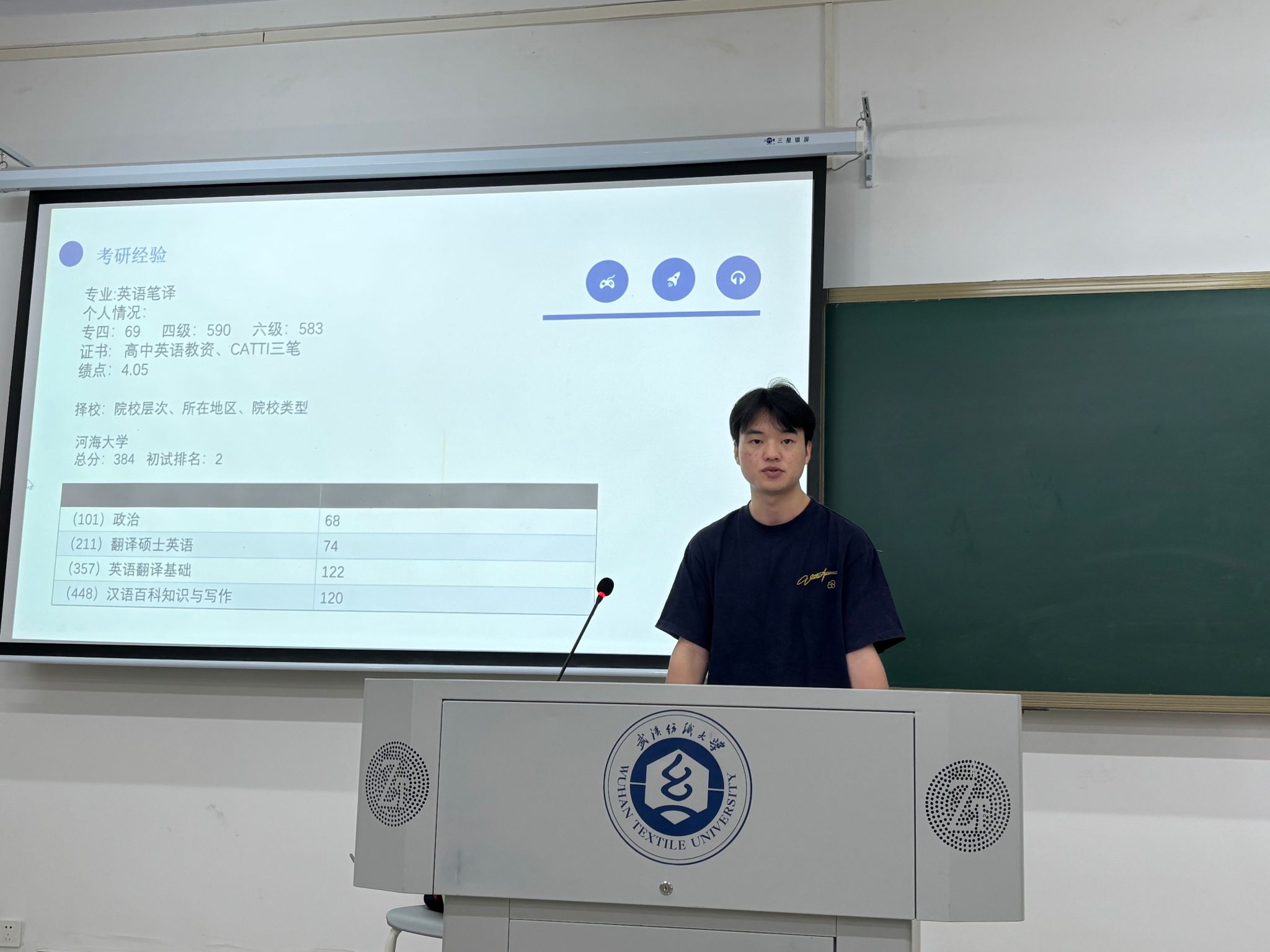 分享会伊始,成功考取华中师范大学翻译专业的周子涵同学进行分享,她分享了自己选择华师的初心,并从翻译专业的核心能力训练切入,强调每日翻译实战的重要性,分享了《英汉翻译简明教程》等实用学习资料,将晦涩的翻译技巧化作生动的学习指南。谈及公共课复习,她结合自身时间管理经验,建议同学们构建知识树体系,夯实基础,稳扎稳打。