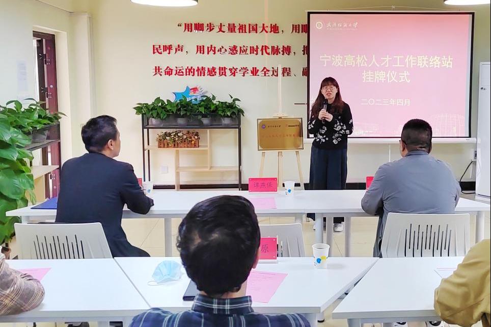 会上,高松电子与外国语学院签订校企合作协议,一同为人才工作联络站揭牌。胡川回顾了与纺大的合作交流情况,结合外语、管理、经济、机械等学科特点,基于自身多年行业从业经验,系统讲解了电子和外贸行业发展趋势、职业发展特点及核心竞争力构成要素,诚挚邀请纺大学子在宁波展现聪明才智、实现人生理想。他表示,纺大的人才联络站是高松电子在湖北挂牌的第一家人才工作联络站,希望联络站成立后,在校企合作、人才招聘、实习实训等方面搭建更好的平台,实现更深层次的合作,优势互补、互利共赢。