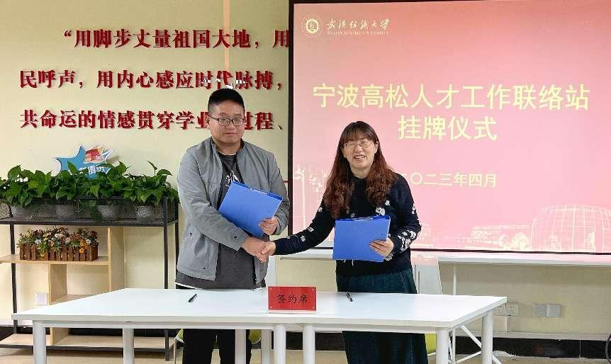 4月27日上午,宁波高松电子有限公司人才工作联络站挂牌仪式在外国语学院在读“习”有声学生成长服务站举行。宁波高松电子有限公司华中大区总监胡川、招聘主管卢义偲,外国语学院院长谭燕保、党委书记胡中原、副院长刘方荣、党委副书记彭阳慈航,三号学生公寓自管会学生代表一同参加协议签署及挂牌仪式。