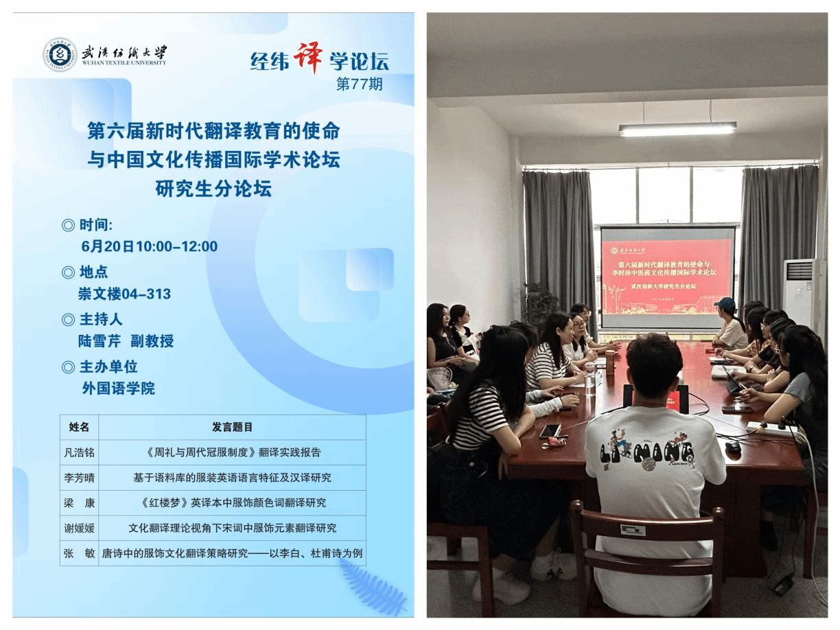 6月20日上午十点到十二点,我院23级MTI研究生在04-313进行了研究生分论坛,分论坛由MTI教育中心副主任陆雪芹主持,副院长刘方荣担任点评老师。五位研究生凡浩铭、李芳晴、梁康、谢媛媛和张敏分享了自己最近的研究。与会老师和同学们就五位发言人的分享进行了激烈的讨论,并在碰撞中拓展了思路,深化了认识。