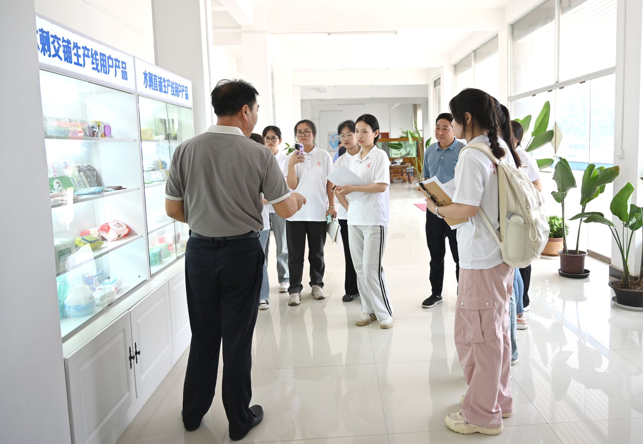 “恒瑞非织造不仅在市场上占据了重要一席,更在技术创新上不断突破,勇于探索未知领域,开发新型生产工艺与产品,像我们使用的面膜、湿纸巾、棉柔巾、尿不湿都是无纺布,后续我们将致力于将无纺布运用于旅行休闲中,以更加便捷我们的生活……”刘城镇一边向同学们展示产品,一边详细介绍。让实践团队成员对无纺布制造行业有了更加深入的了解,更让他们深刻感受到了恒瑞非织造在技术创新、品质控制及人文关怀方面的卓越成就。在这片充满活力与希望的土地上,三线精神正以新的形式绽放光芒,引领着企业不断前行,共创辉煌。