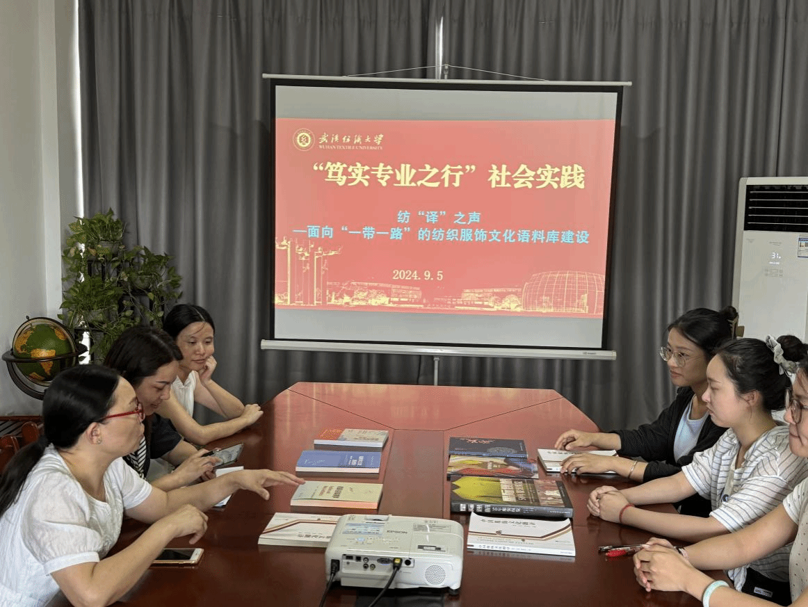 团队首先明确了“笃实专业之行”社会实践的总体目标和意义,即通过建设纺织服饰文化语料库,让学生进一步了解学校的纺织服饰特色,明确翻译专业学习的意义,让研究生的所学知识得以应用。其次团队商讨了本次社会实践的实地调研和数据收集的方法和手段,即团队将会参观纺织科技馆、非遗文化馆及湖北省博物馆等,挖掘和整理纺织服饰相关材料。同时,外国语学院已经出版了多部关于纺织服饰方面的译著,团队将以这些译著作为建设语料库的重要参考资料。