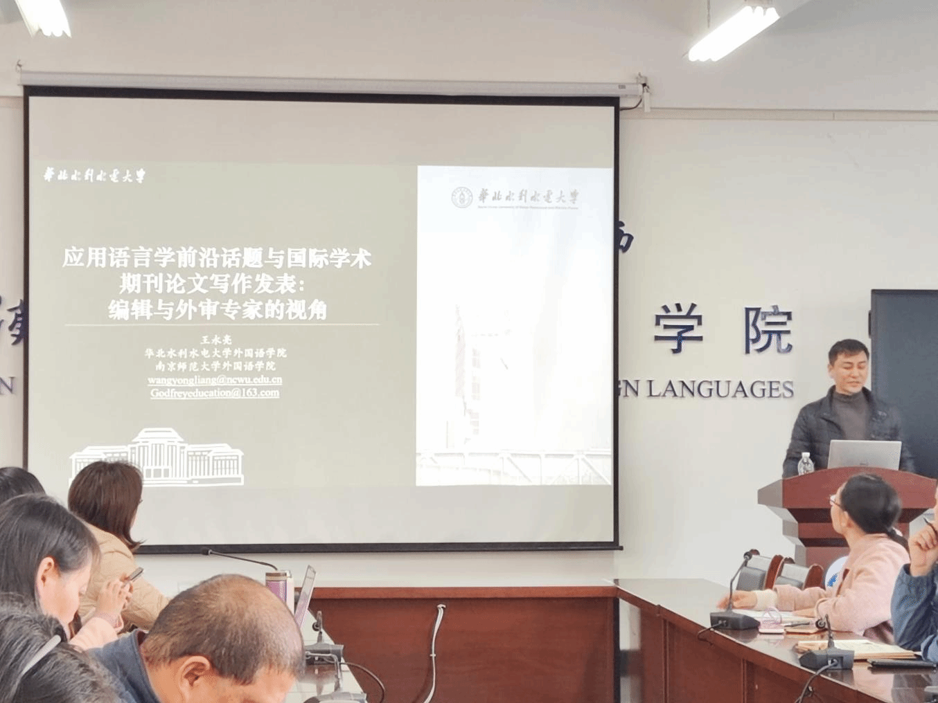 11月21日,华北水电水利大学副教授、南京师范大学外国语学院硕士生导师王永亮应外国语学院邀请,做客武汉纺织大学第709期阳光论坛暨外国语学院第63期崇文讲堂,给学院教师带来了题为“应用语言学前沿话题与国际学术期刊论文写作发表:编辑与外审专家的视角”的精彩学术讲座。讲座由副院长刘方荣主持,学院全体教师参加。