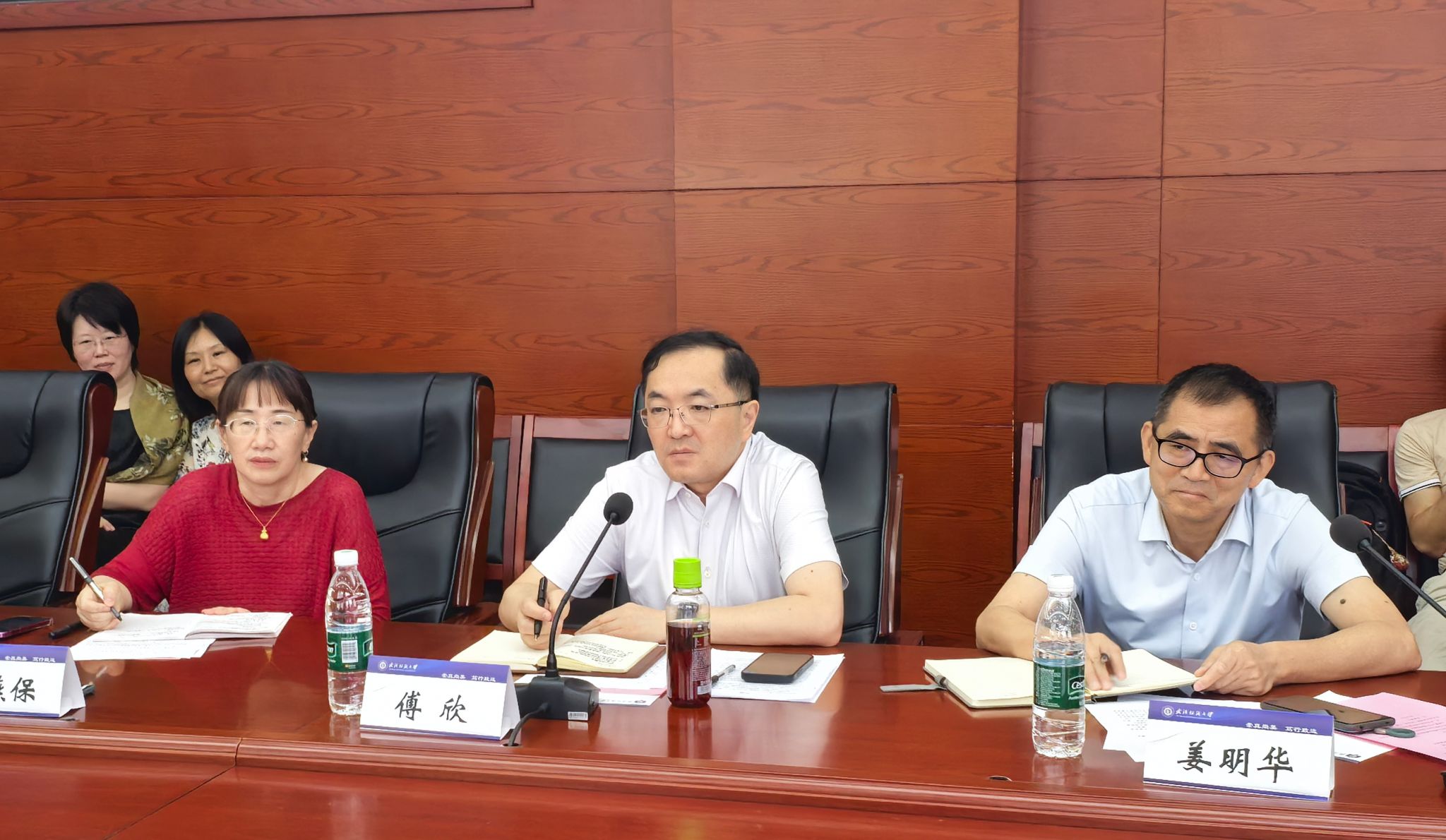 8月1日,由武汉纺织大学外国语学院主办的“‘理解当代中国’课程建设汇报会”在南湖校区举行。本次专题研讨会以“理解当代中国课程建设”为主题,特邀教育部高等学校外国语言文学类专业教指委主任、北京外国语大学原副校长孙有中教授,教育部高等学校英语专业教指委委员、外交学院副校长孙吉胜教授,广东外语外贸大学英文学院院长张欣教授,中南民族大学外国语学院院长易立新教授参加会议。武汉纺织大学校长傅欣教授为研讨会致辞。会议由武汉纺织大学副校长姜明华教授主持。姜明华在致辞中对出席本次会议的嘉宾、代表表示热烈欢迎,同时表达了对本次会议的期望和祝福。