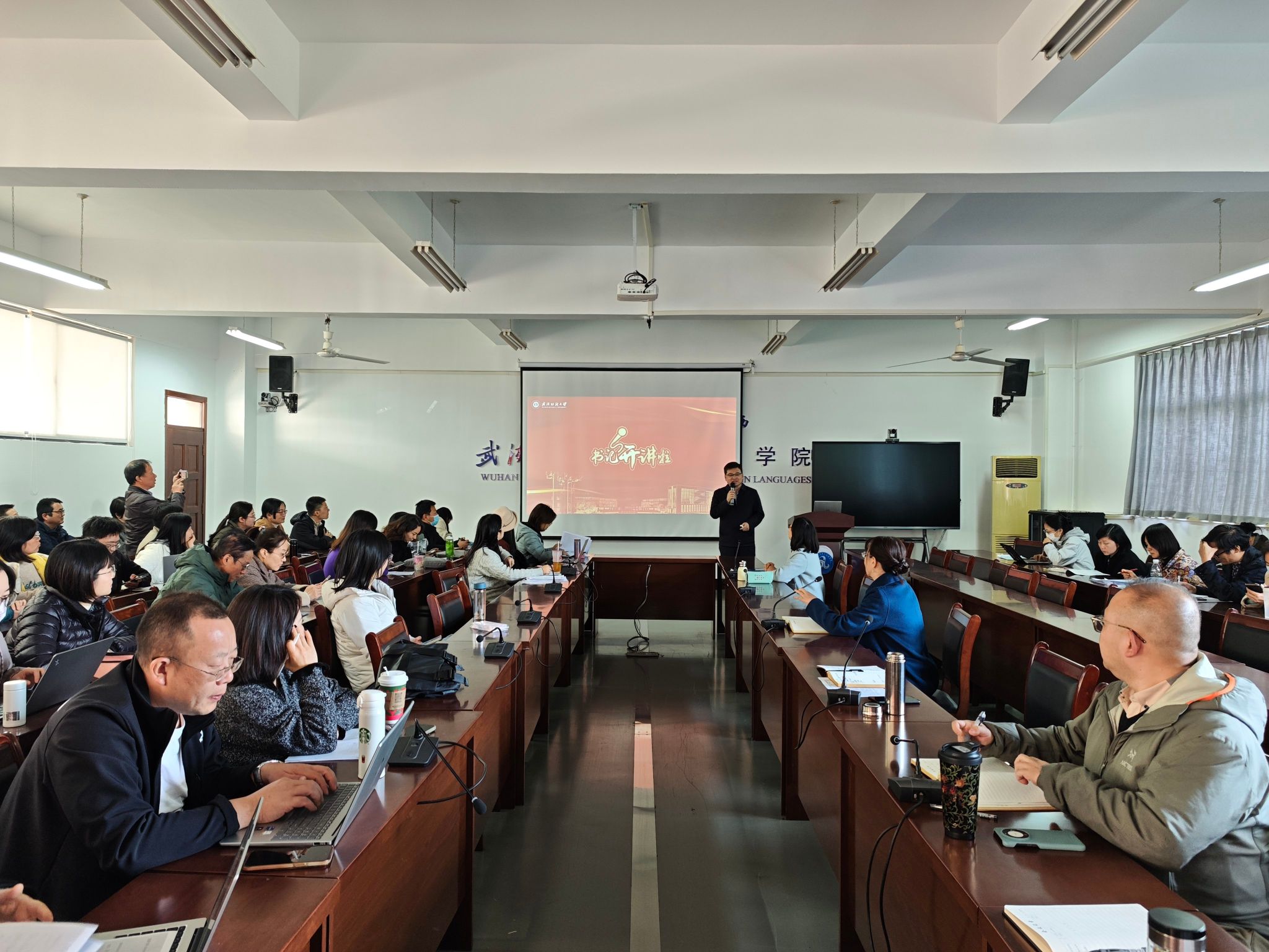 11月20日下午,外国语学院“书记开讲啦”主题活动在阳光校区04-303会议室举行。学院党委书记汪仕辉以《外语学科梦归何处》为题,面向全体教职工作专题讲授,围绕外语学科的危机与先机、变局与新局、趋势与优势展开深入探讨,为学院学科转型与高质量发展明确方向、凝聚共识。