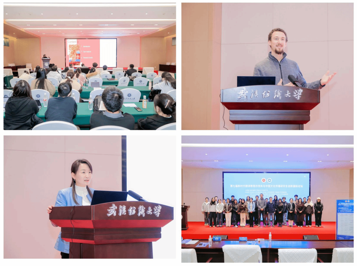 本次论坛由湖北省翻译工作者协会与武汉纺织大学联合主办,武汉纺织大学、武汉理工大学、中南民族大学、湖北工业大学、武汉轻工大学、湖北中医药大学六所高校外国语学院共同承办,传神语联网网络科技股份有限公司、四川语言桥信息技术有限公司等四家语言服务企业协办,以“创新赋能翻译实践,协同共促学科发展”为主题,汇聚国内外学界专家、高校师生及业界代表,共话翻译教育发展与中国文化国际传播新方向。本次论坛以校际协作、国际联动、产学研融合为特色,不仅展现了研究生的学术研究成果与创新能力,更凝聚了翻译学科发展共识,对推动翻译教育提质增效、助力中国文化国际传播具有重要意义。