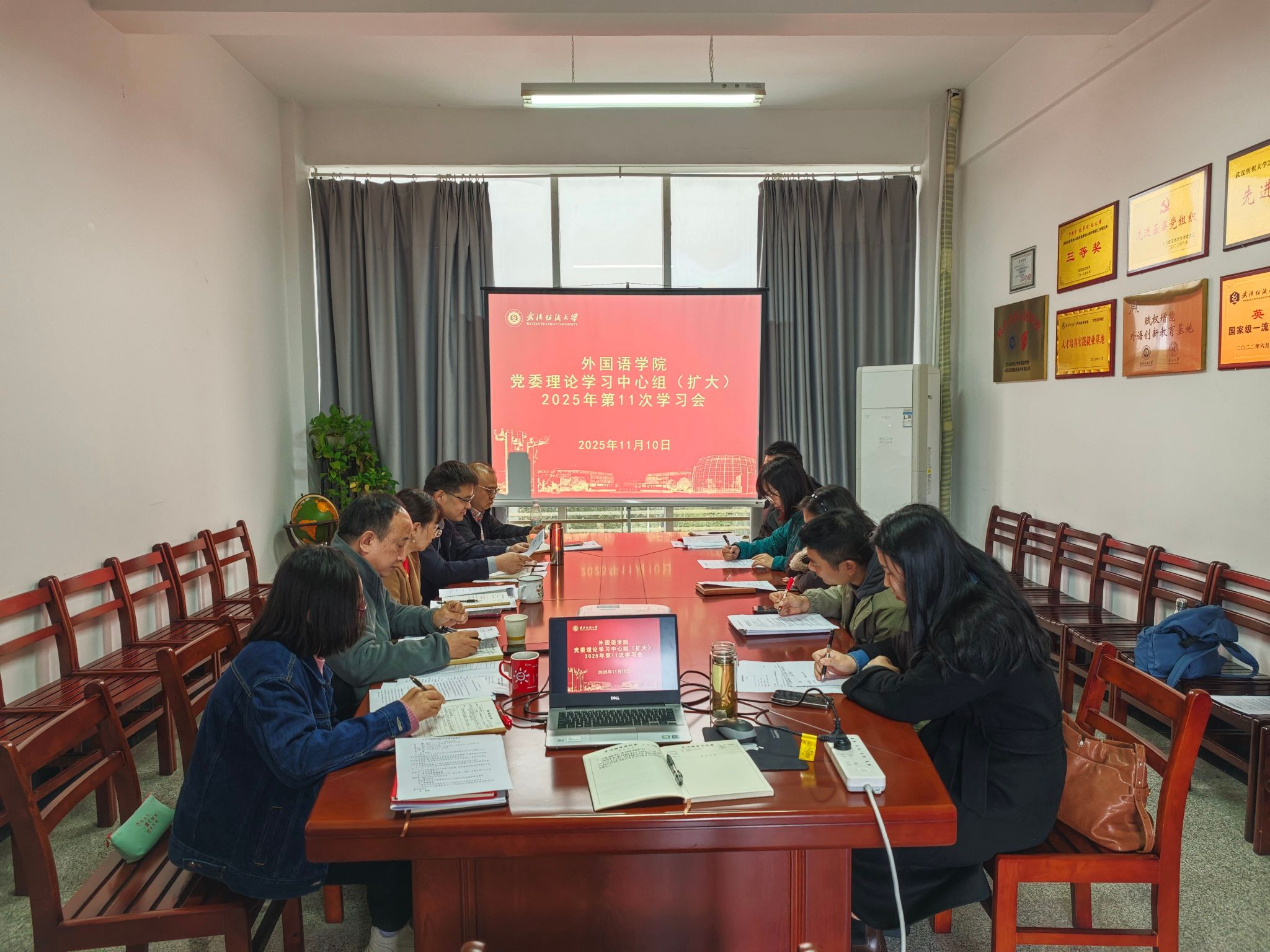 11月10日上午,外国语学院党委理论学习中心组(扩大)学习会在04-313会议室召开,本次学习会的主题是奋进“十五五” 续写新篇章,学院党委书记汪仕辉主持会议,院长谭燕保、副院长罗绮伦、刘方荣、副书记彭阳慈航、党委委员、党支部书记、系(部)主任参加会议。