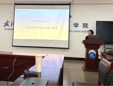 1月8日下午,外国语学院在崇文楼303会议室举办了第133期学术沙龙,主题是:国家级项目申报交流。本次沙龙特邀请中南财经政法大学外国语学院朱灵慧教授进行题为“跨学科研究:外语学科的项目选题与撰写”的专题报告,同时也请学院周丹、郭艳红和谢易三位老师结合自己已经完成的国家级项目申报的初稿进行了交流汇报。沙龙由副院长刘方荣主持,院长谭燕保教授和学院符合申报条件的其他教授、副教授、博士和40岁以下的老师参加了此次沙龙。