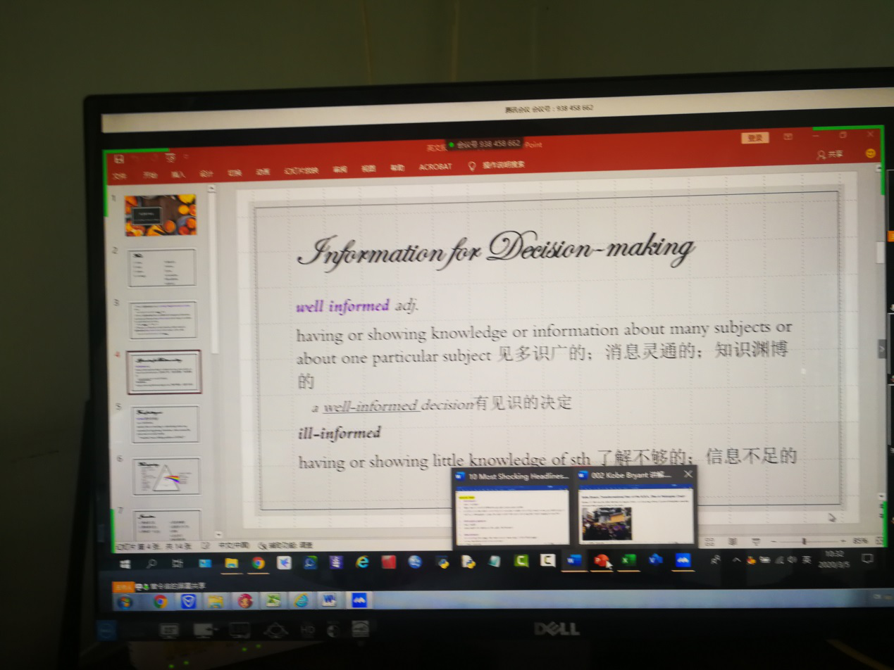 曾令宙老师“英语报刊阅读”课程,采用腾讯会议授课平台,教会学生如何采用谷歌访问助手进入外网,在线查阅“纽约时报”“太阳报”等最新的语料资源,传授翻译技巧,教学资源前沿化,提高学生学习能力,老师投入多,传授知识实用。