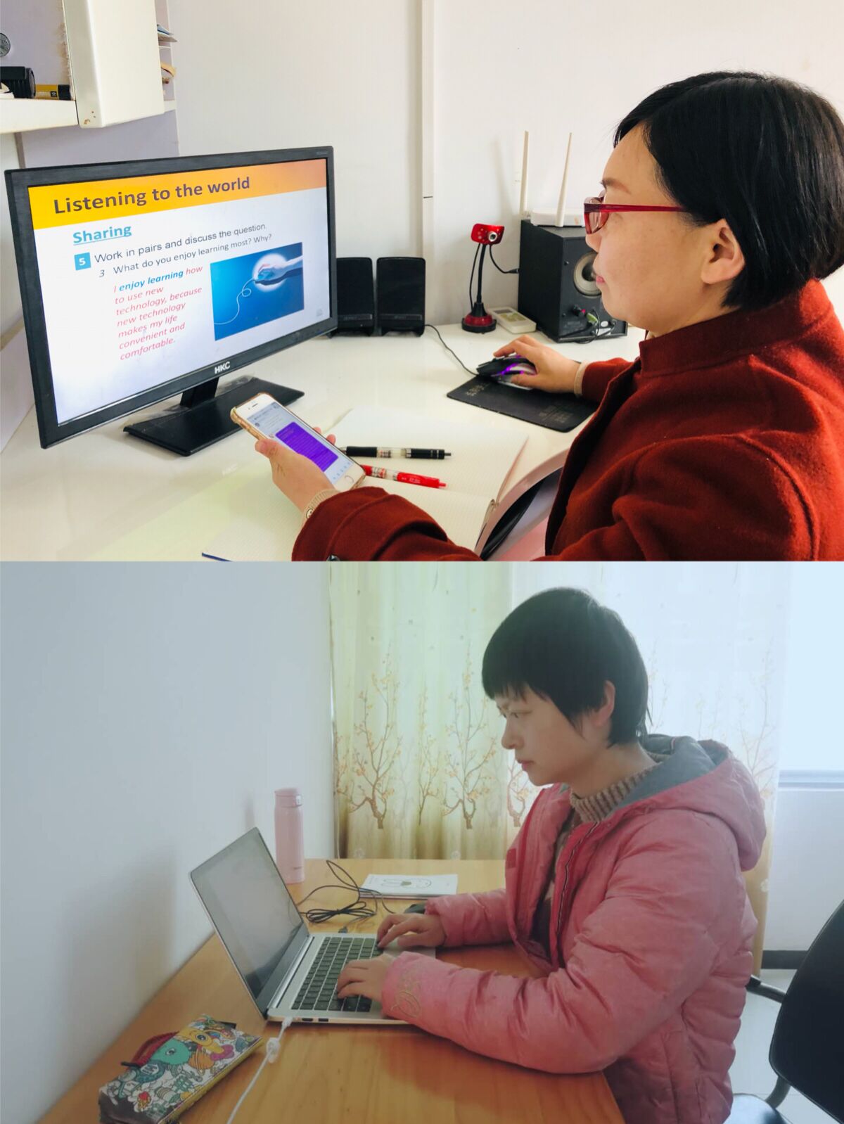 教学运行,师者担当。为落实“停课不停教”的总体要求,外语学院结合各网络教学平台如超星学习通、中国大学慕课及外研U校园等提供的网络资源,确保学生能够在网络学习阶段取得良好学习效果。英语专业负责人陈韵如老师本年度在英国利兹大学大学访学,除了参与英语专业的网络教学部署工作之外,她还主动承担起一门因为外教不能承担网络教学工作的课程教学任务。因两地长达8个小时的时差,为了不影响学生学习,陈老师主动提出夜间开展教学,得到师生一致好评。身处农村的曹婷老师,为充分保障录课质量,常常在深夜孩子熟睡后开始录课,经常工作到凌晨。刘方荣老师在缺乏教材,网络环境较差的情况下,积极备课、制作教学PPT,利用外研社U校园平台给学生上英语技能训练课程,利用QQ群与学生互动交流、答疑。