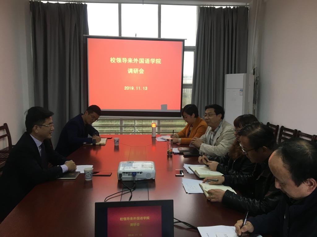 11月13日下午,校党委常委、副书记张文学到外国语学院调研指导工作,外国语学院全体党政班子成员参加了调研会。